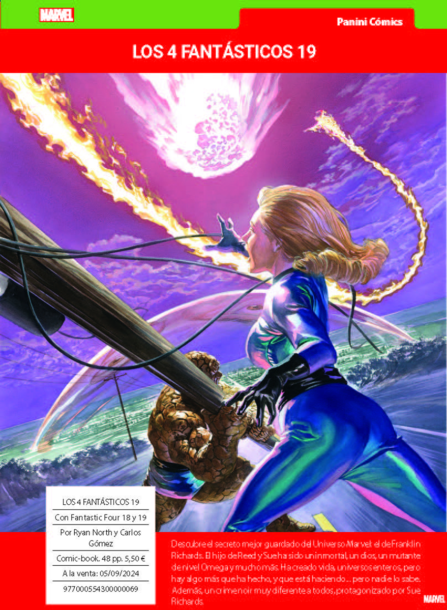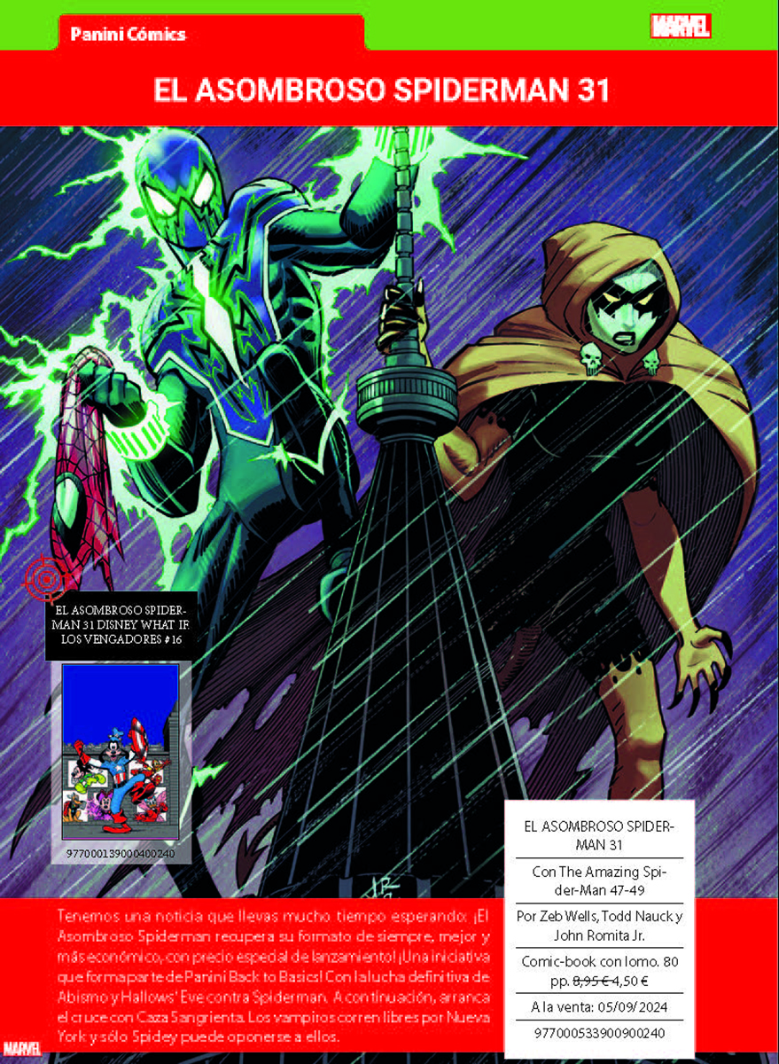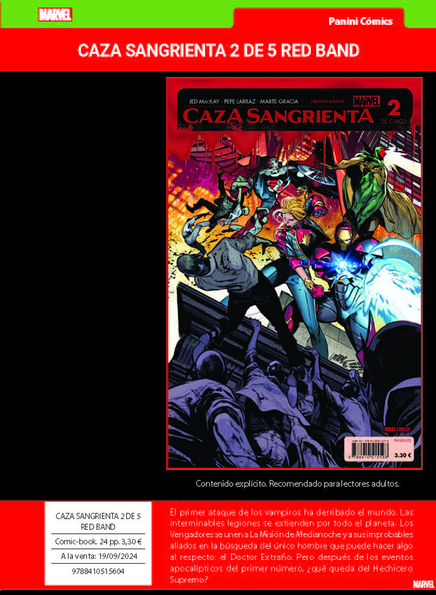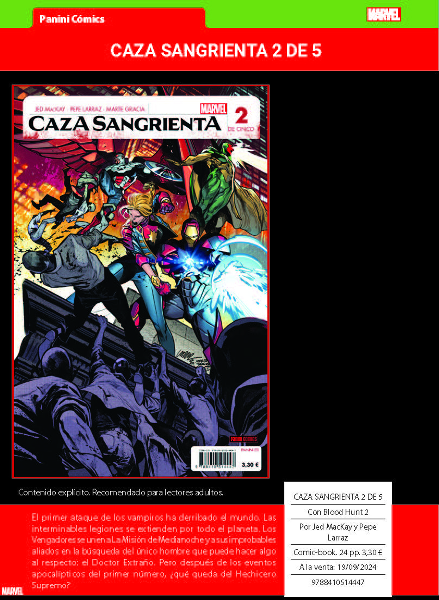 Como se indica en la nota de prensa, este mes destaca «la nueva entrega del CÓMIC GRATIS PANINI, en que encontrarás el prólogo de CAZA SANGRIENTA, el relanzamiento de LA IMPOSIBLE PATRULLA-X, el siguiente enfrentamiento de Spiderman y El Duende Verde, un avance de la nueva era de THE ULTIMATES o los primeros pasos hacia GUERRA DE VENENO,»