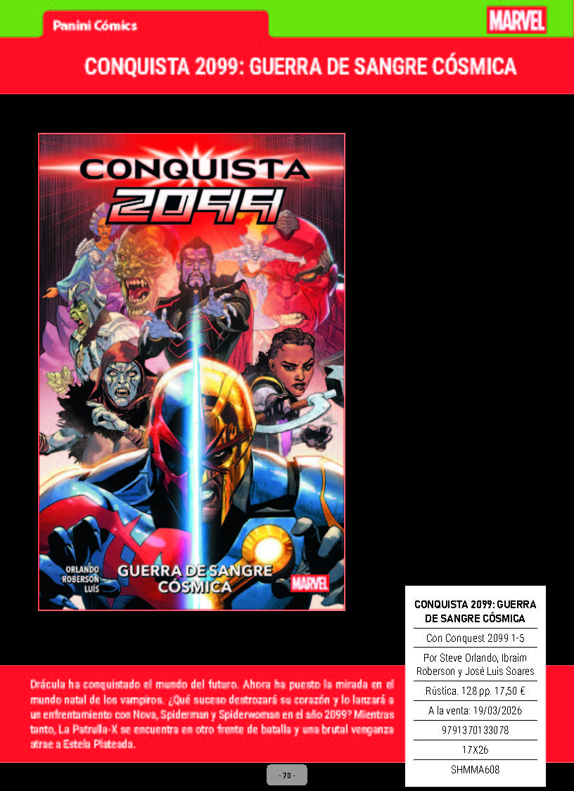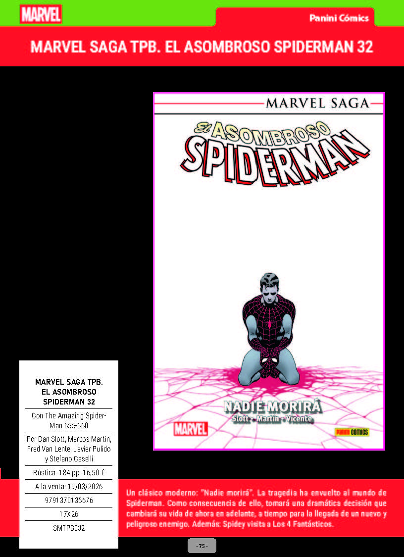 A continuación os ofrecemos la información con las novedades Marvel que Panini Comics va a publicar a lo largo de este mes de marzo de 2026 en España. Es una selección del boletín mensual, que podéis descargar completo desde la página web de la editorial en los enlaces del final.