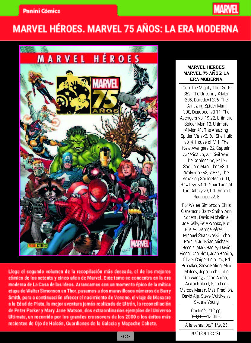 A continuación os ofrecemos la información con las novedades Marvel que Panini Comics va a publicar a lo largo de este mes de noviembre en España. Es una selección del boletín mensual, que podéis descargar completo desde la página web de la editorial en los enlaces del final.