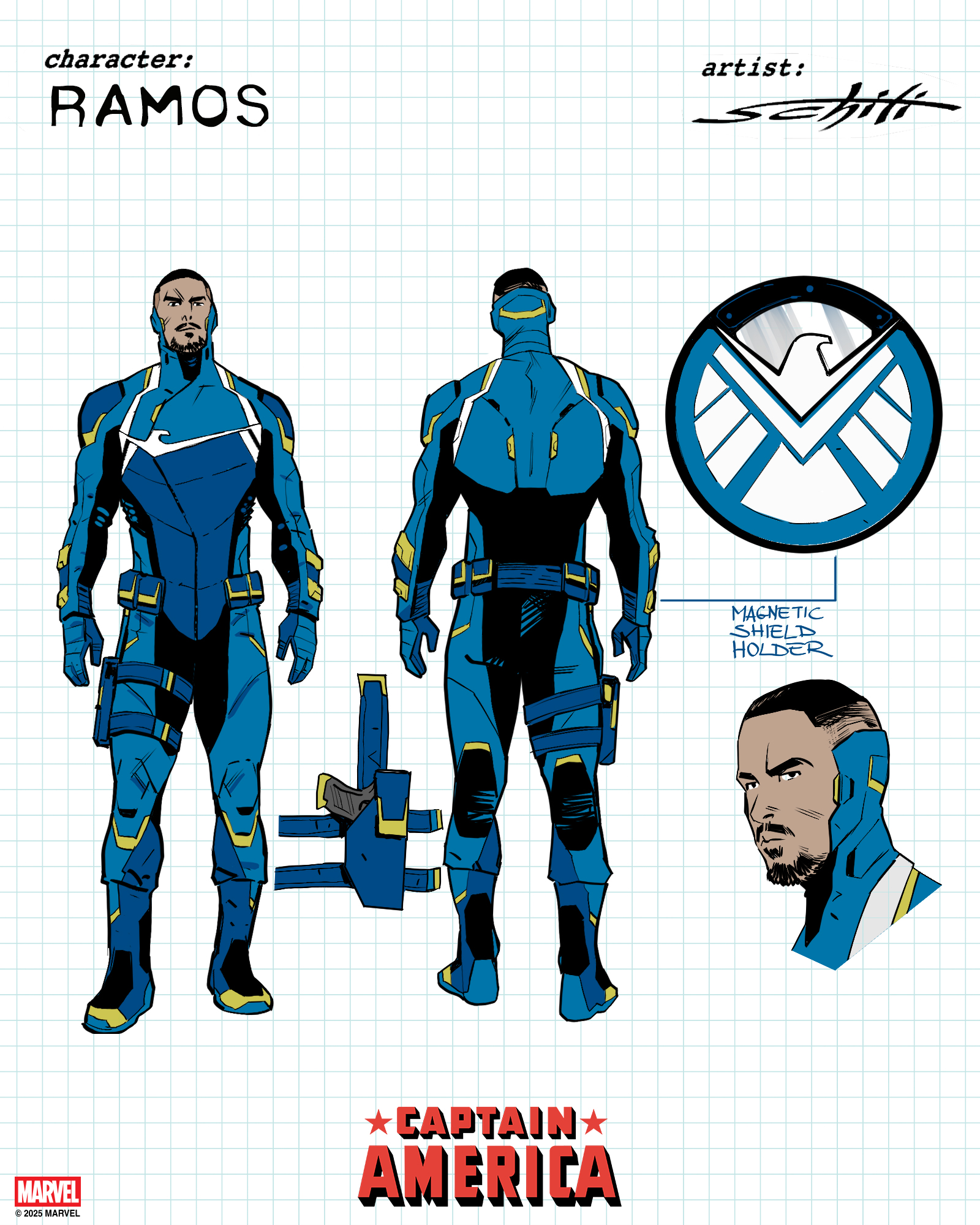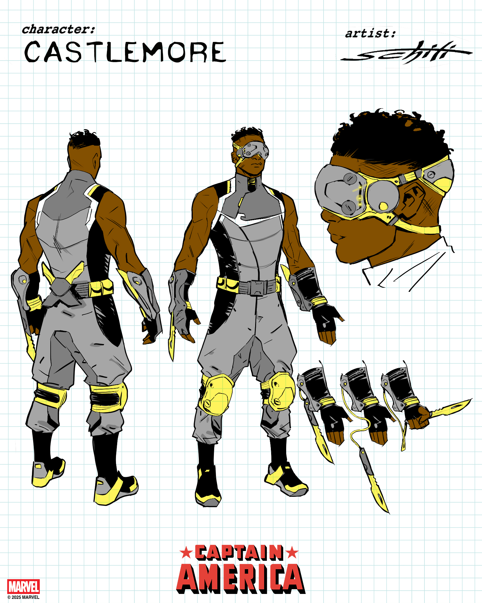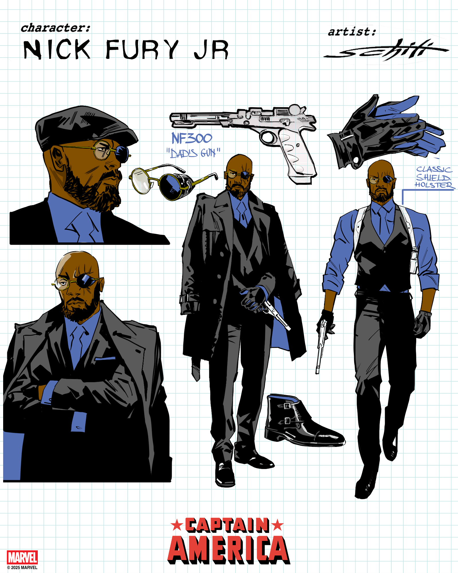 A continuación podéis ver diseños de los nuevos miembros de SHIELD, «aunque inicialmente tenía una idea distinta del grupo que iba a apoyar a Steve», matiza Zdarsky. «Pero cuando surgió la oportunidad de volver a poner en marcha una nueva SHIELD, me lancé a ello. El mundo es un lugar peligroso. Aunque Nick y SHIELD no estuvieran ahí para para a Muerte, tal vez puedan evitar lo que viene después…».