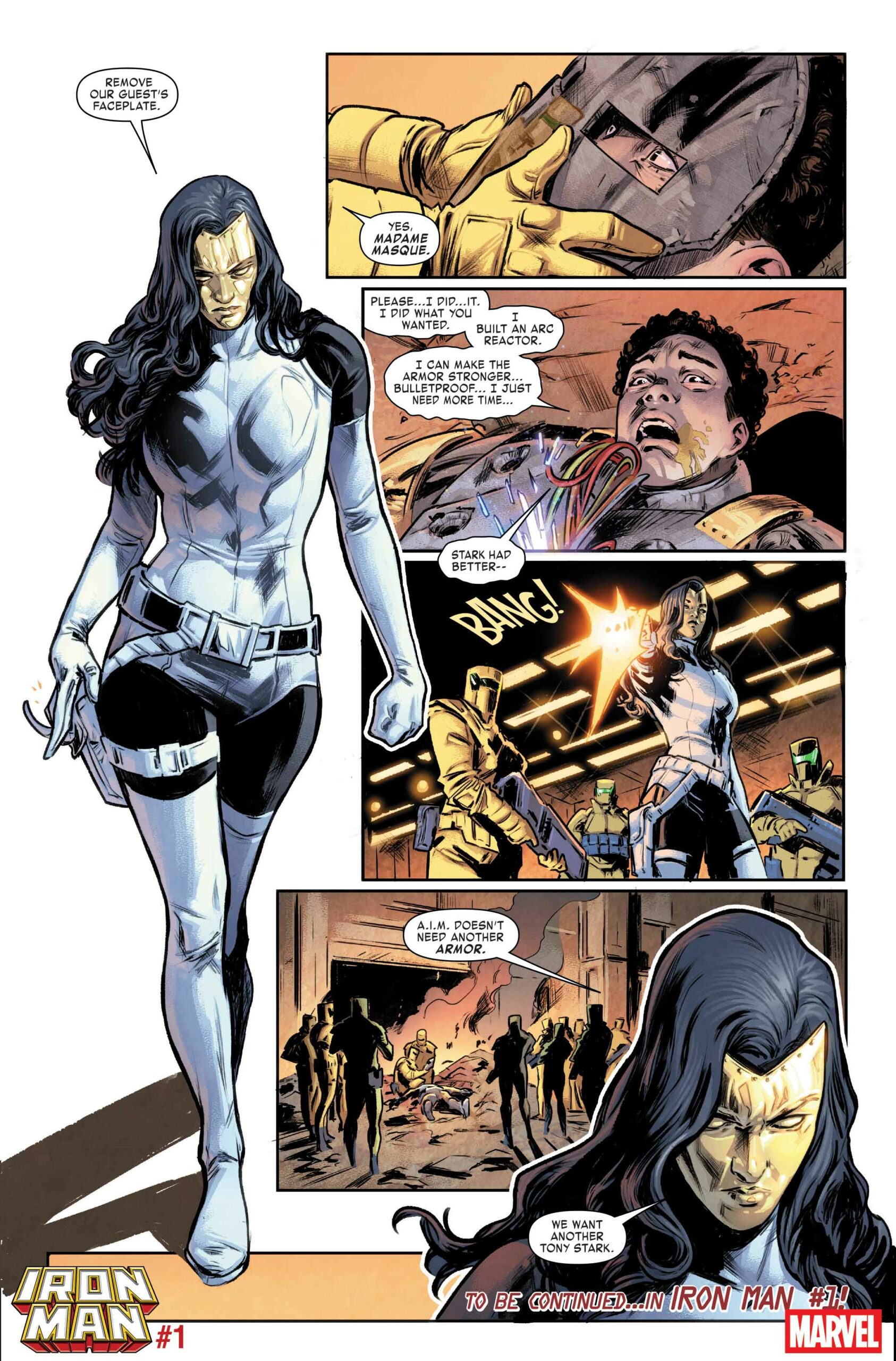 Esta nueva etapa arranca cuando el plan de Iron Man para darle forma a su legado se convierte en una oportunidad para armar al próximo Tony Stark. Nace un nuevo archienemigo y aparecerán rostros familiares. Cuando la muerte llama de nuevo a la puerta, ¿qué arma ha de crear Tony? ¿Y qué sucede si alguien la ha inventado antes? Son cuestiones que el propio Stark se ha planteado durante mucho tiempo, y también lo ha hecho Madame Máscara quien, con el poder de IMA tras ella, está preparada para crear la próxima gran arma.