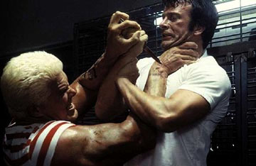 Puede que parte de la culpa la tengan un caricaturesco John Travolta como Howard Saint y un plano Thomas Jane, demasiado limpio y bienintencionado para Castle, pero también es cierto que sus personajes están reducidos desde el mismo guión al puro tópico. En el plano actoral sólo cabe destacar a la mujer del gángster, una Laura Harring con “Mulholland Drive” aún reciente, magnética como mujer fatal, madre herida y esposa ardiente, casi tan cruel como Ma Gnucci. Su rencor es la causa última de que su marido extienda la vendetta no sólo a Frank sino a toda su familia en sentido amplio, sorprendiendo encontrar al Roy Scheider de “Tiburón” como patriarca del clan Castle. Demuestra de qué palo viene tal astilla al defender a los suyos de los sicarios de Saint codo a codo con Frank, lo que no deja de ser ciertamente risible. Si acaso lo único que puede criticarse del bloque de origen es que justifica elementos del personaje que no lo necesitaban, fundamentalmente la calavera y las armas del Castigador, que al pretender trascender en legados respectivamente del hijo y el padre de Castle pierden su fuerza primaria como expresión externa de su violencia interior.