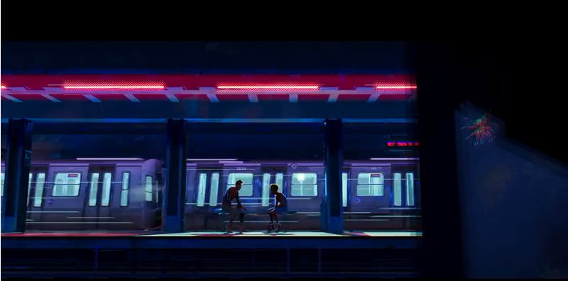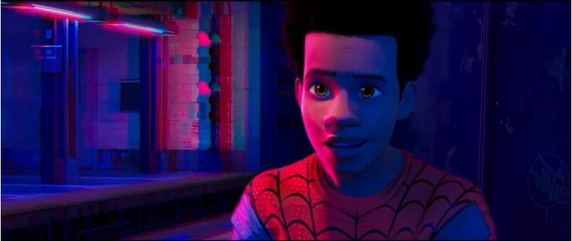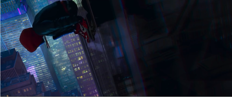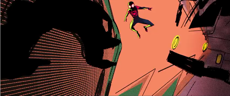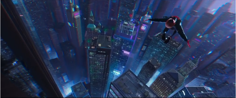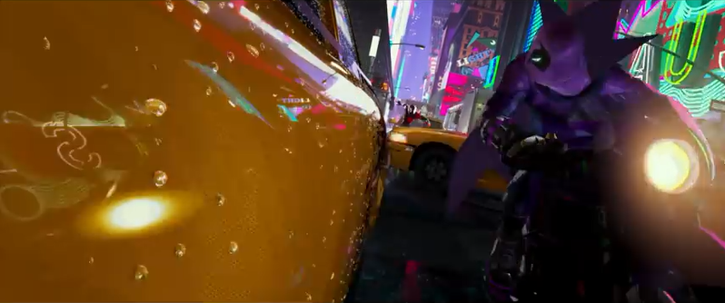 Sorprende, y me ha encantado, en primer lugar, un estilo visual definitivamente juvenil pero acaso menos infantil de lo esperable por la filmografía de sus principales responsables. También menos cuidado que el estándar de Big Hero 6, pero que compensa un mayor atrevimiento que los Hotel Transilvania marca Sony Pictures Animation. Destacando, muy especialmente, el juego del efecto de cuatricomía en el choque contra el taxi, reivindicando esa cercanía que mencionábamos antes entre los lenguajes del cómic y la animación, que solemos perder en la acción real. ¿No sería una manera chulísima de plasmar el sentido arácnido?