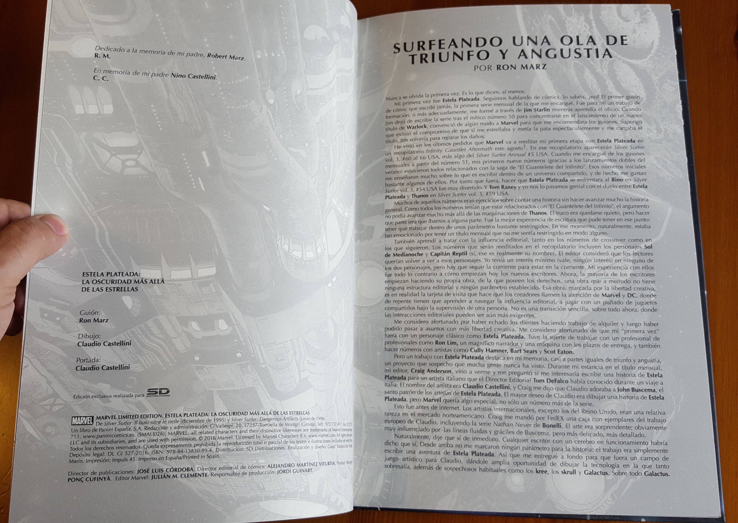 Es un número especial por varios motivos: aunque es una edición limitada también de 1.500 ejemplares, en esta ocasión cada ejemplar vendrá firmado por el artista, Claudio Castellini. Además, el tomo es de mayor tamaño al hanbitual, y la calidad del papel es muy superior a lo que hemos visto hasta ahora. Es un papel poroso, de gran gramaje que me recuerda mucho al que utilizan los dibujantes para hacer sus obras. Es bastante rígido y reproduce bien las imágenes.