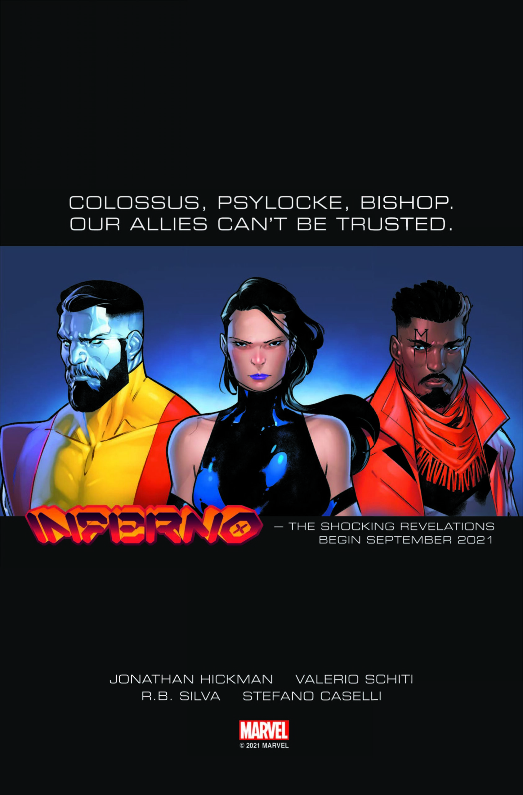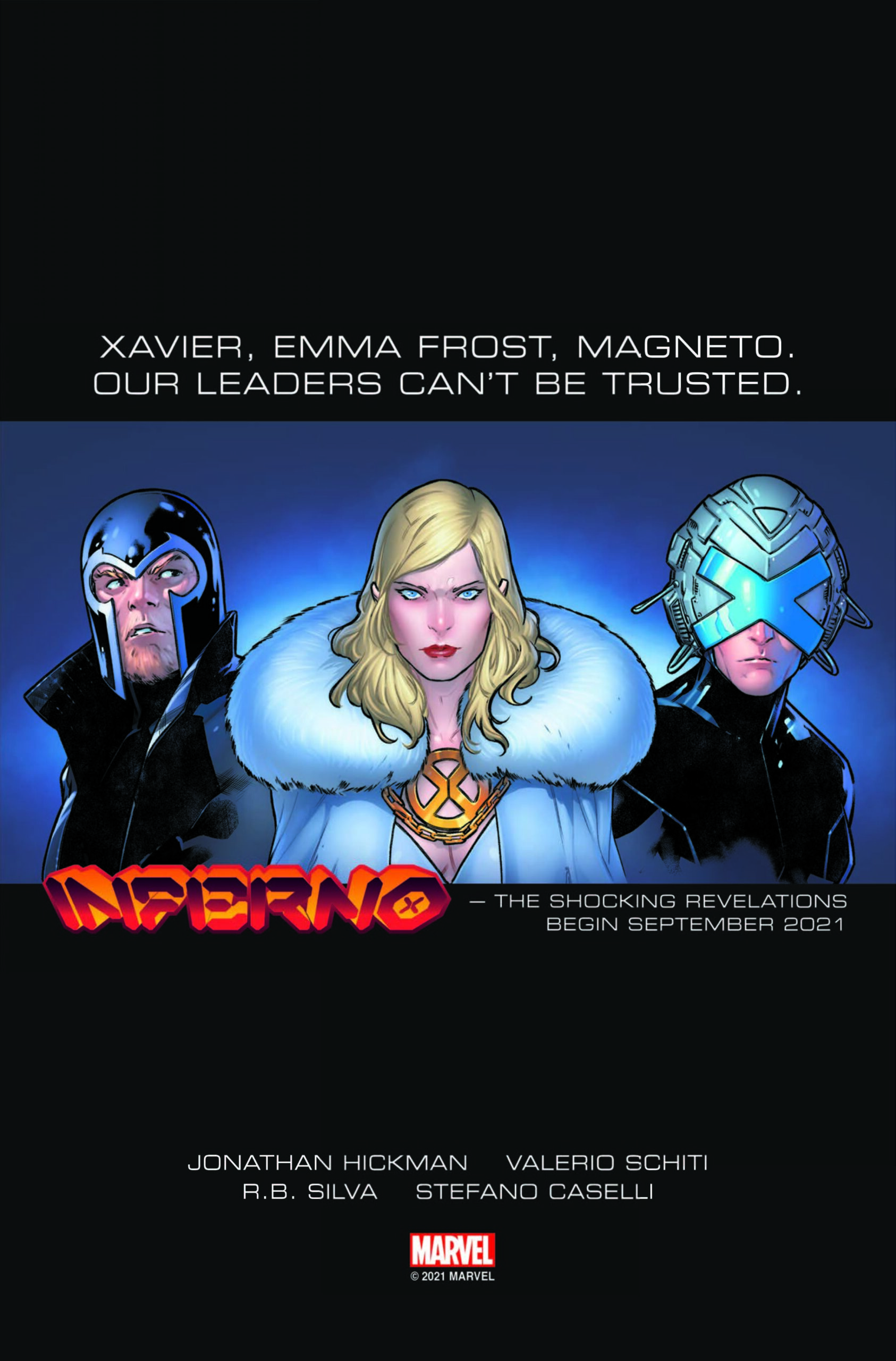 Es siguiente capítulo en la gran visión que nos está ofreciendo el escritor de La Patrulla-X promete ser un drama que crece sobre las semillas que se plantaron en Dinastía de X y Potencia de X. El adelanto lo tenemos en las imágenes que podéis ver al final y que son obra del dibujante R. B. Silva, un homenaje a los anuncios que se hicieron en el año 1989 cuando se publicó la historia de Inferno original, en las que nos ofrece los actores principales de la futura saga.