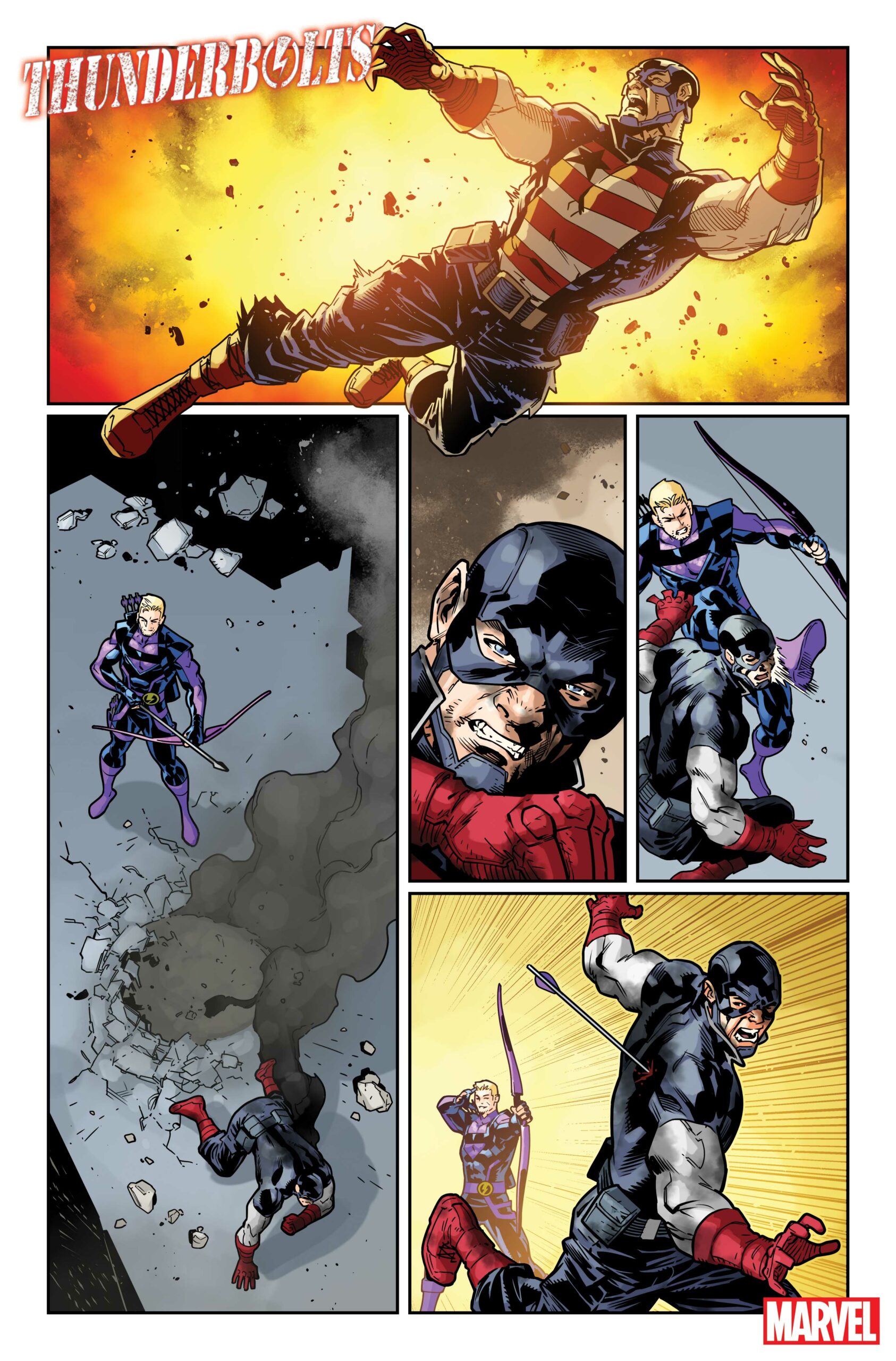 La nueva etapa de los Thunderbolts arranca el último día de este mes de agosto de la mano del guionista Jim Zub y del dibujante Sean Izaakse. Como es habitual en el grupo, cada colección arranca con un nuevo grupo de miembros, y en esta ocasión se mezclan héroes icónicos de Marvel, estrellas emergentes de la editorial, anti-héroes en conflicto y novatos. Seleccionados por Luke Cage para ofrecer la luz de la justicia a la ciudad, el nuevo equipo tendrá como líder a Ojo de Halcón, a quien acompañará Spectrum, America Chavez, Power Man y Kara Killgrave, conocida como Persuasión, junto a los novatos Gutsen Glory, un supersolado experimentado y misterioso, y Eegro el Irrompible, que deburará en el segundo número. La primera misión será capturar a los Thunderbolts organizados por Kingpin que han extendido el caos en la ciudad durante El Reinado del Diablo.