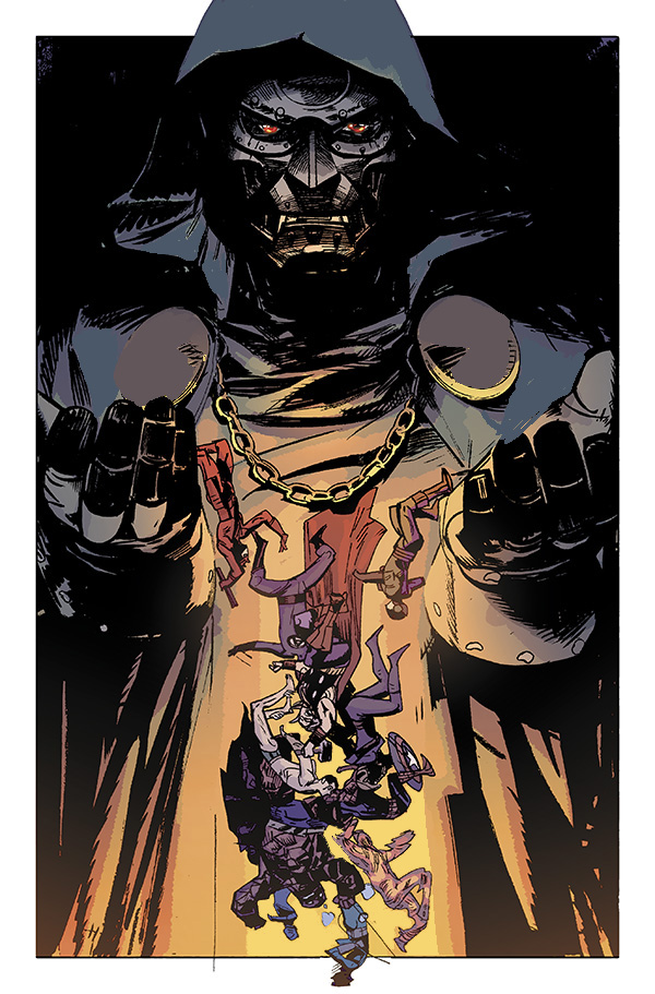 En prime lugar, el escritor superestrella James Robinson, y el legendario artista Alex Maleev, arrojarán una reveladora luz sobre los pecados y secretos del ególatra Doctor Muerte. Los secretos que El Vigilante guardaba contienen la clave para el desmantelamiento de Victor Von Doom y de todo lo que ha construido. ¿Hasta donde llegará para proteger su legado?