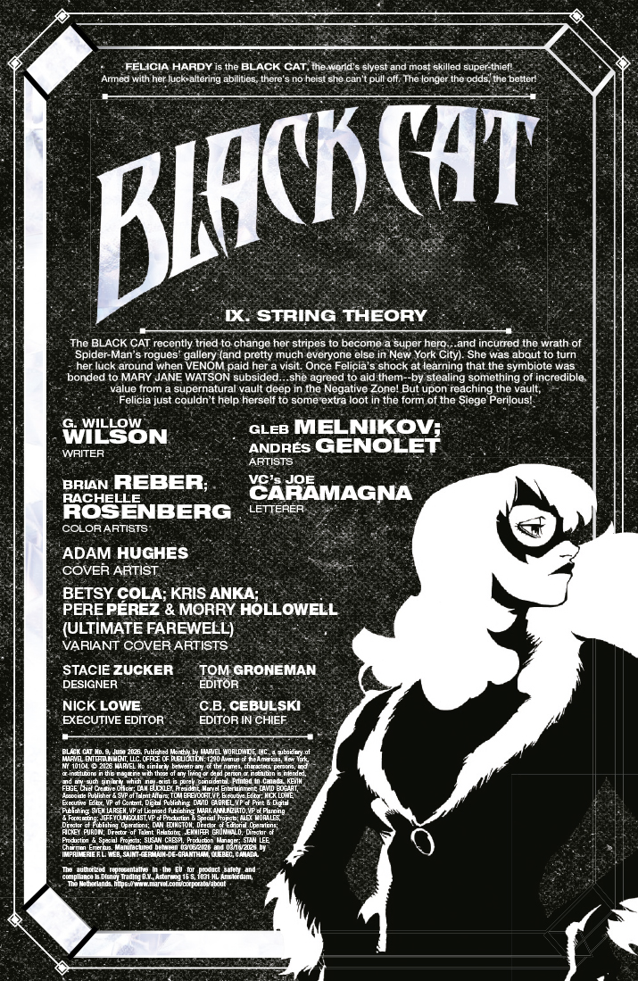 A continuación puedes ver la portada y las primeras páginas del comic-book Black Cat #9, que se pondrá a la venta el miércoles 8 de abril de 2026.