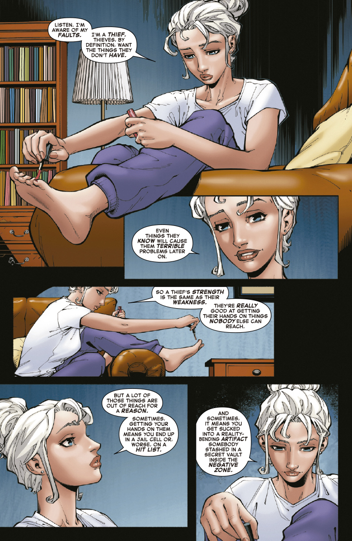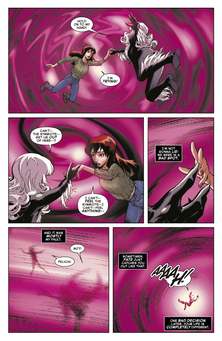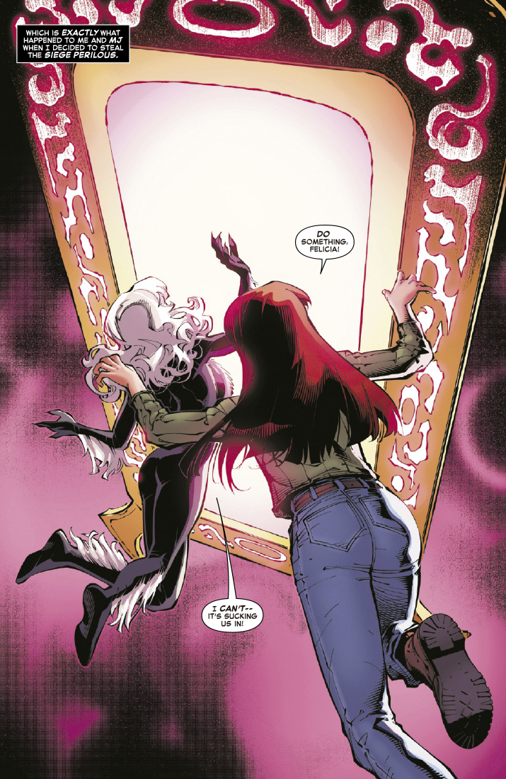 Todo está saliéndole mal a la Gata Negra y a Veneno. Está huyendo con su trofeo, pero no es el que habían venido a buscar. Y ese trofeo podría acabar siendo híperdestructivo, una máquina de apocalipsis multiuniversal. ¿Cuánto podría llegar a conseguir Felicia por ella?