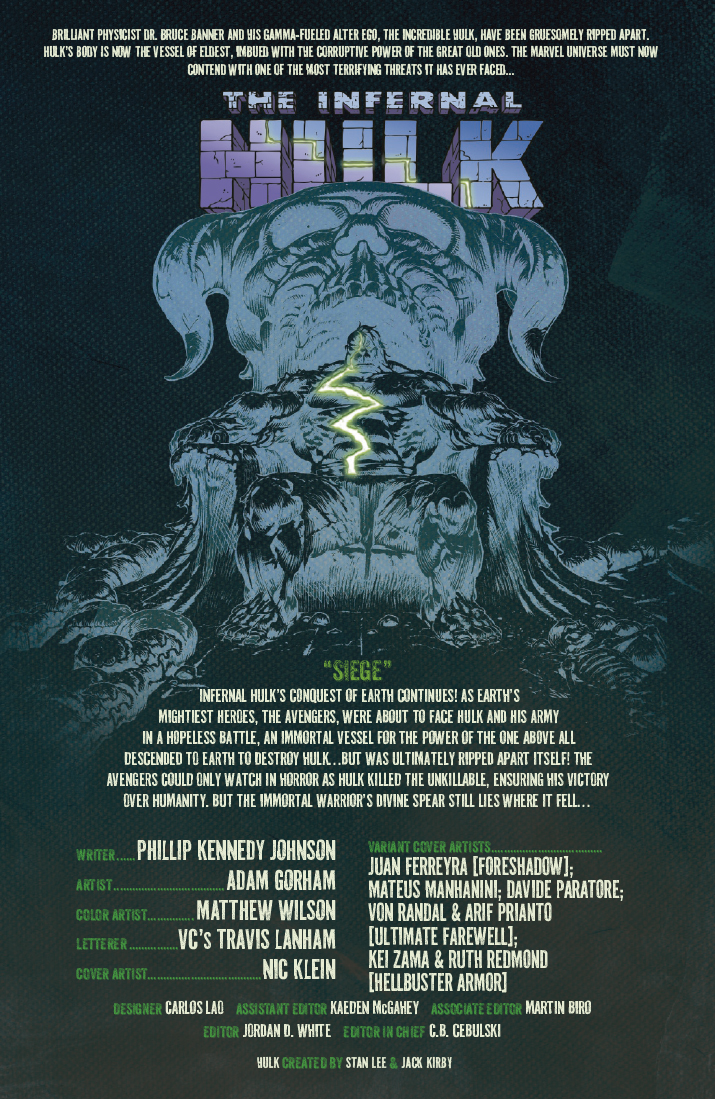A continuación puedes ver la portada y las primeras páginas del comic-book Infernal Hulk #6, que se pondrá a la venta el miércoles 22 de abril de 2026.
