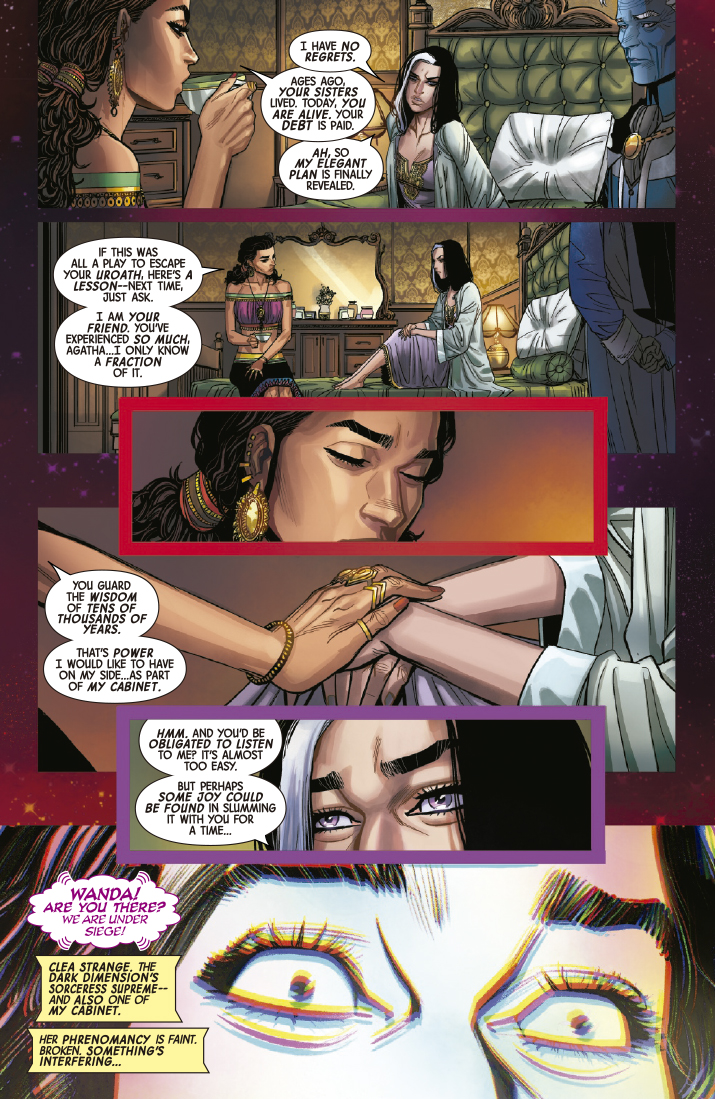 Un mensaje de socorro de Clea Extraño convoca a Wanda hasta la dimensión oscura. El malvado Dormammu regresa para recuperar sus fuerzas consumiento la fuerza vital de Clea y de su hermana Donna. Ahora, las dos Hechiceras Supremas deben unirse para destruir a Dormammu mientras se enfrentan a la ira de su nueva creación: el sabueso llameante.