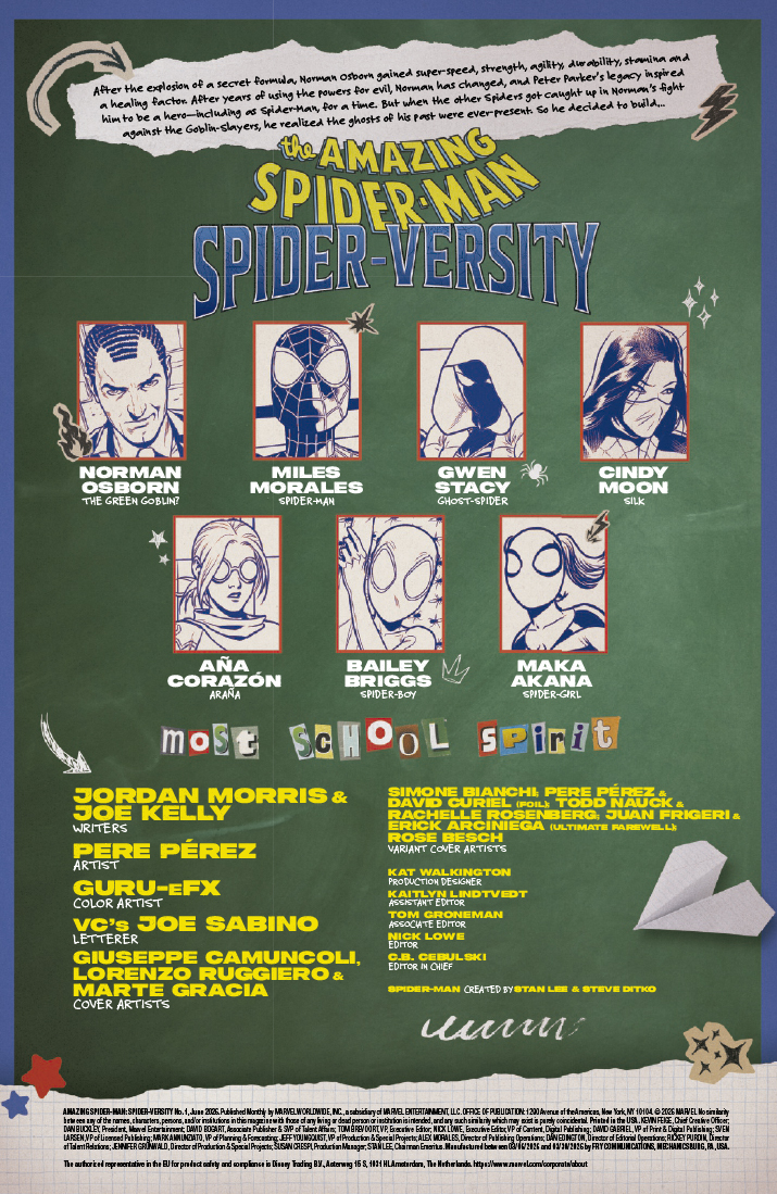 A continuación puedes ver la portada y las primeras páginas del comic-book The Amazing Spider-Man: Spider-Versity #1, que se pondrá a la venta el miércoles 22 de abril de 2026.