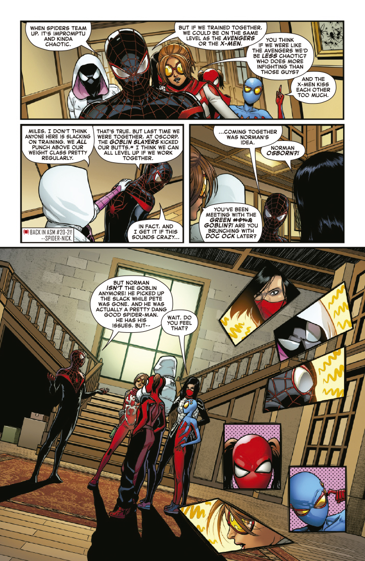Miles Morales, Spider-Gwen, Seda, Araña, Spider-Boy y Spider-Girl tienen algo en común: no están preparados. De acuerdo con el antiduo Spiderman Resolutivo, Norman Osborn. Así que él y Spiderwoman van a entrenarlos para afrontar la próxima amenaza, de la única manera que el Duende Verde sabe. Porque su próxima amenaza podría ser el propio Duende Verde.