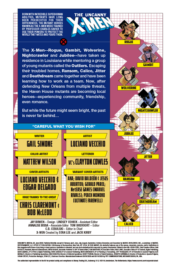 A continuación puedes ver la portada y las primeras páginas del comic-book Uncanny X-Men #26, que se pondrá a la venta el miércoles 8 de abril de 2026.