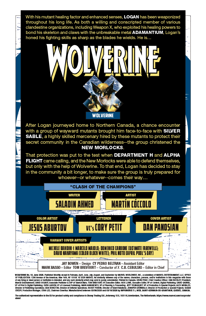 A continuación puedes ver la portada y las primeras páginas del comic-book Wolverine #18, que se pondrá a la venta el miércoles 8 de abril de 2026.