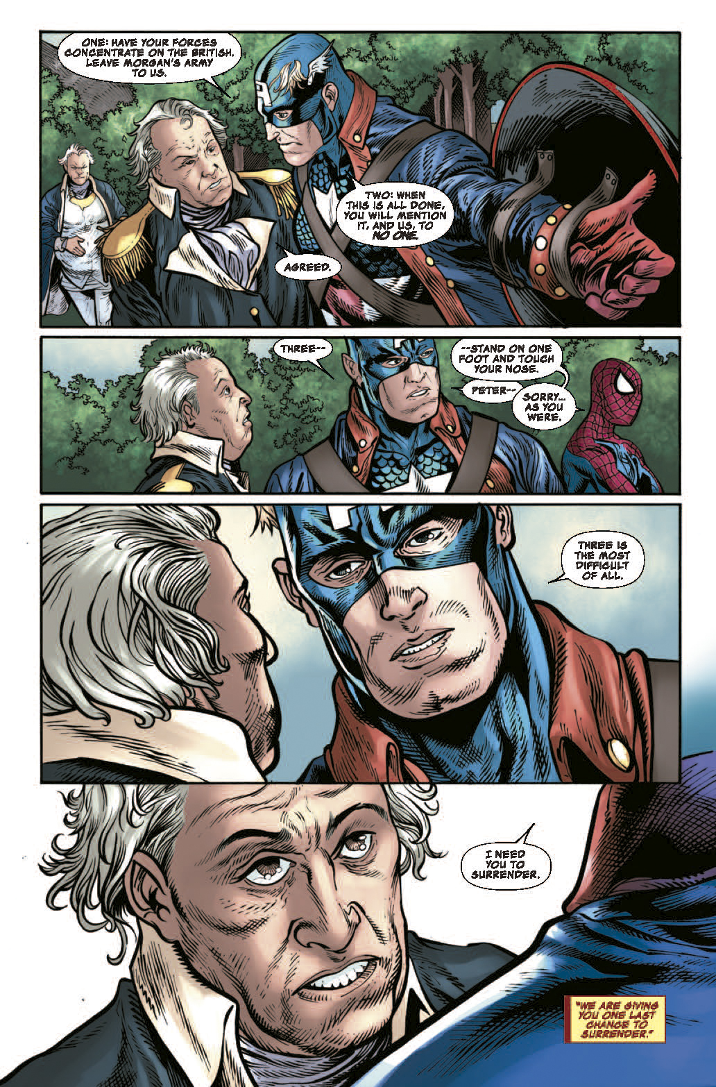 La calamidad que se extiende en el tiempo crece hasta un catastrófico clímax de conclusión. A lo largo del propio tiempo, ¿podrán el Doctor Extraño, el Capitán América, Spiderman y sus aliados impedir que Morgan Le Fay y los Reales conquisten las colonias americanas y pongan fin al experimento americano antes incluso de que tenga la oportunidad de comenzar?