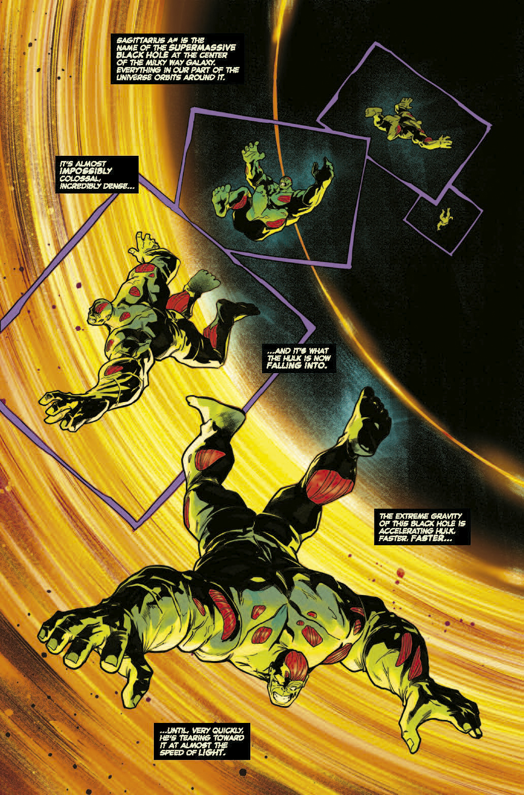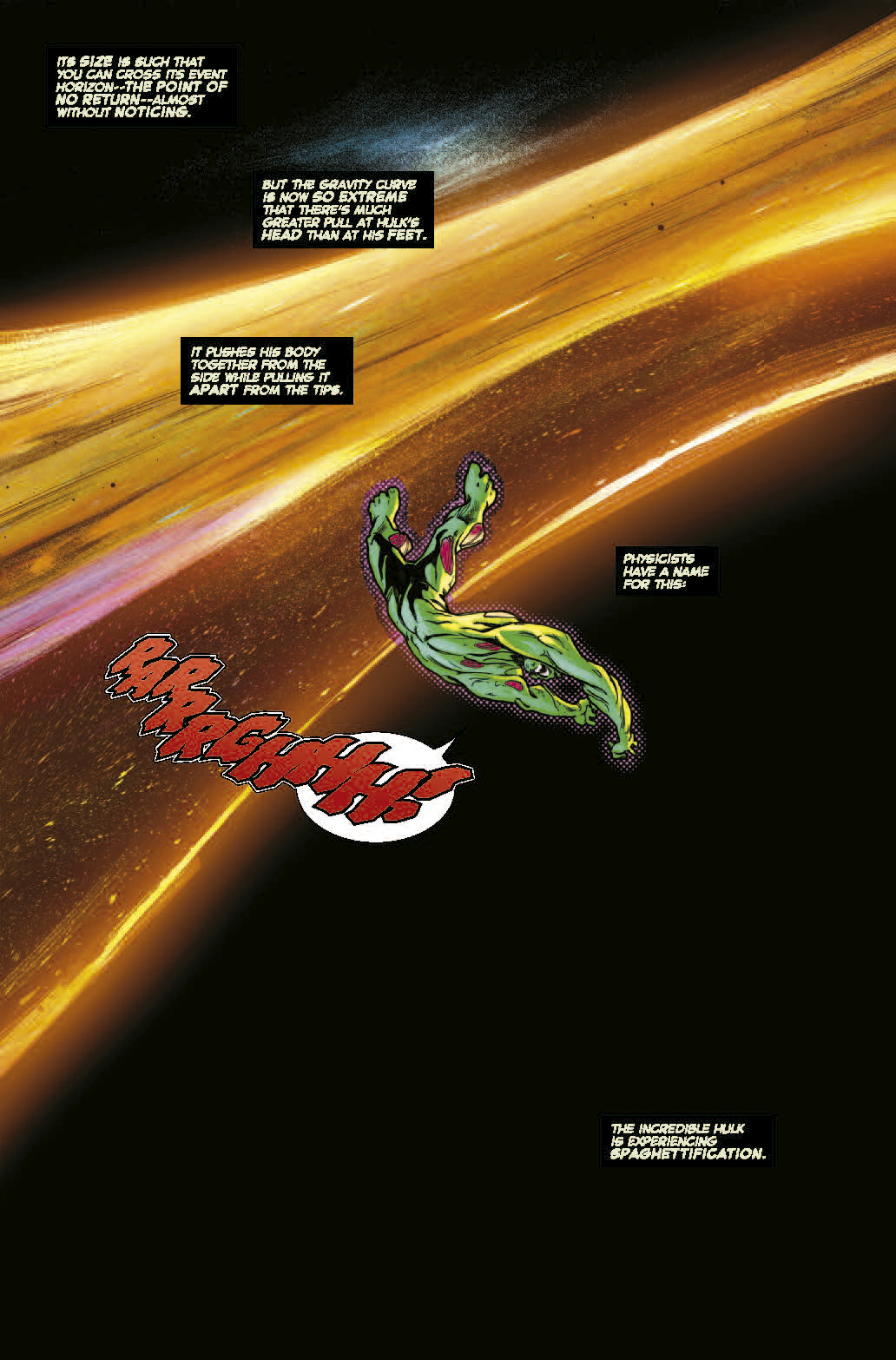 Es la lucha que no sabías que necesitabas. Hulk contra el supermsaivo agujero negro en el centro de la galaxia. ¿Podrán las fuerzas de la física ser lo suficientemente fuertes para ponerle final a la rabia de Hulk o podrá conquistar el gigante de jade al propio cosmos?