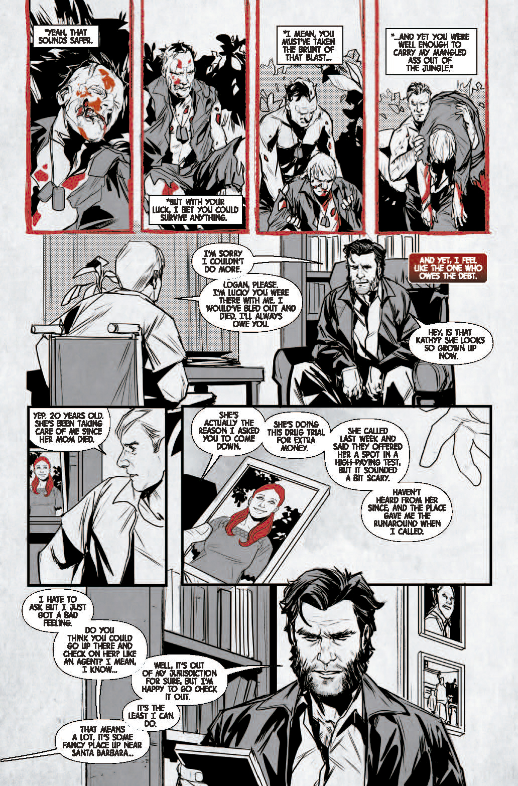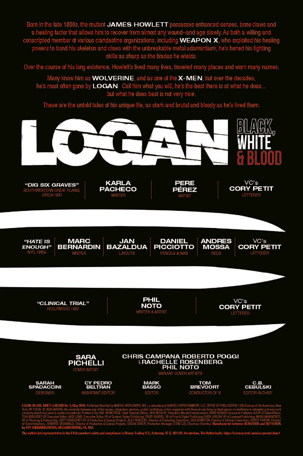 A continuación puedes ver las primeras páginas del comic-book Logan: Black, White & blood #3, que se pondrá a la venta el miércoles 11 de marzo de 2026.