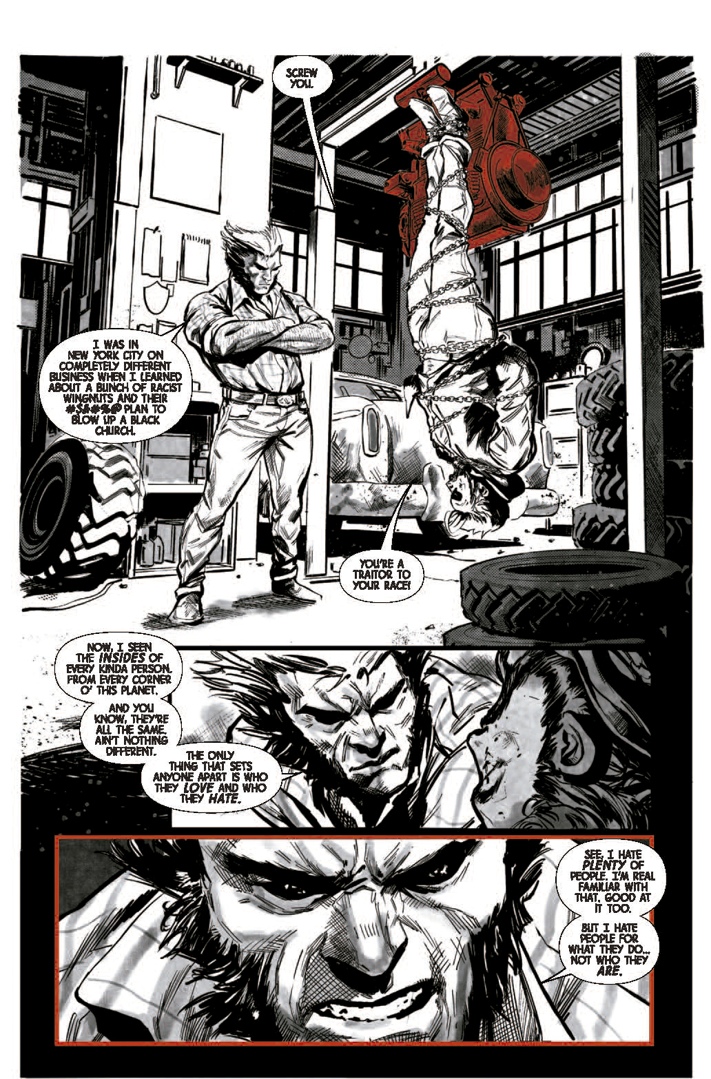 El hombre que llegará a ser Lobezno se pone del lado bueno cuando asiste a un crimen contra inocentes, según nos cuenta Marc Bernardin.