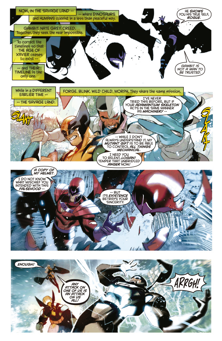 La Patrulla-X de Apocalipsis viaja a una tierra antes del tiempo y Gambito se encuentra a la mujer que ama en un mundo que no había hecho: Pícara. Además, Dientes de Sable contra Zabu, Magneto como invitado especial, Sauron y Simone Di Meo haciendo su magia con dinosaurios.
