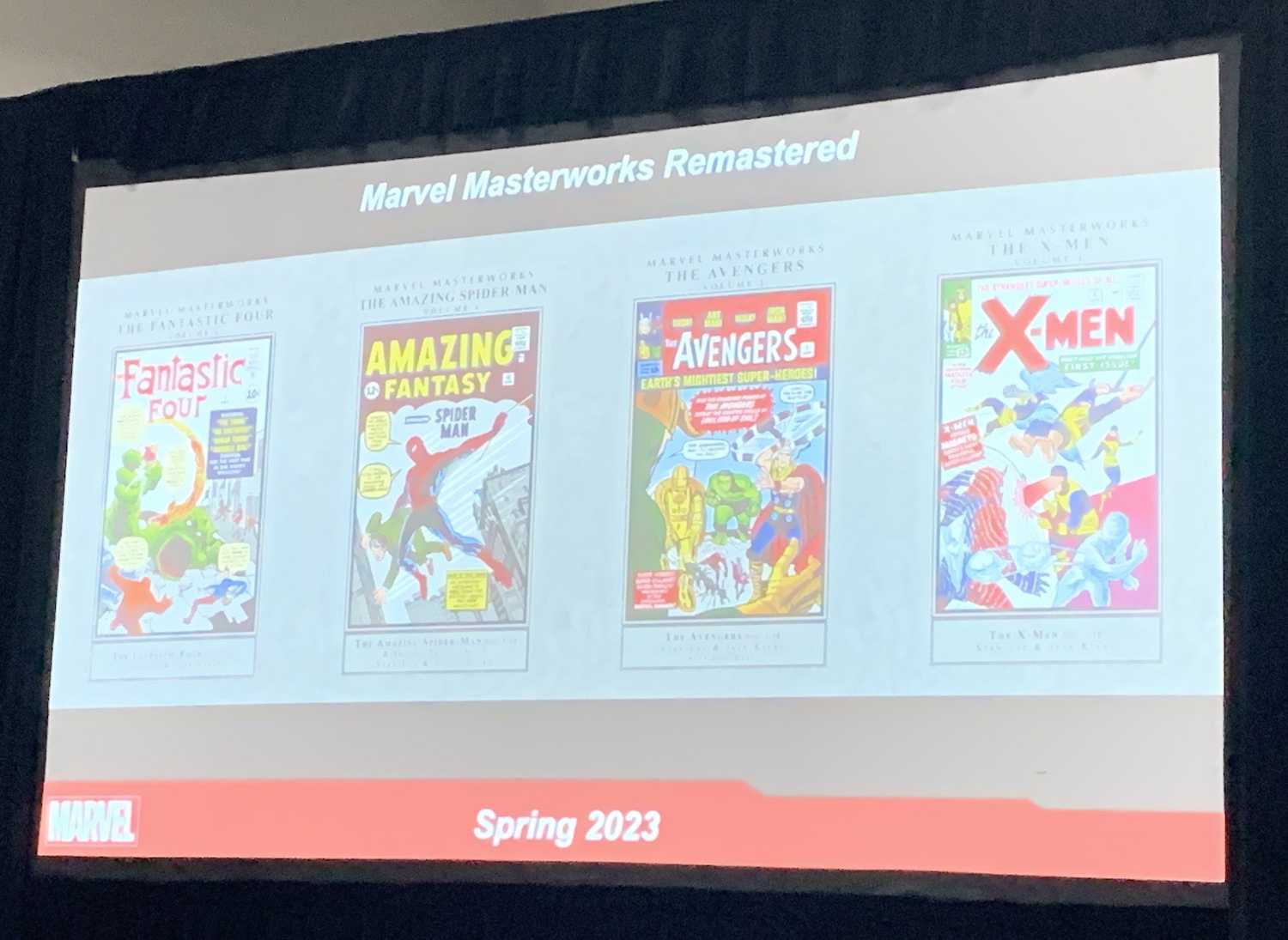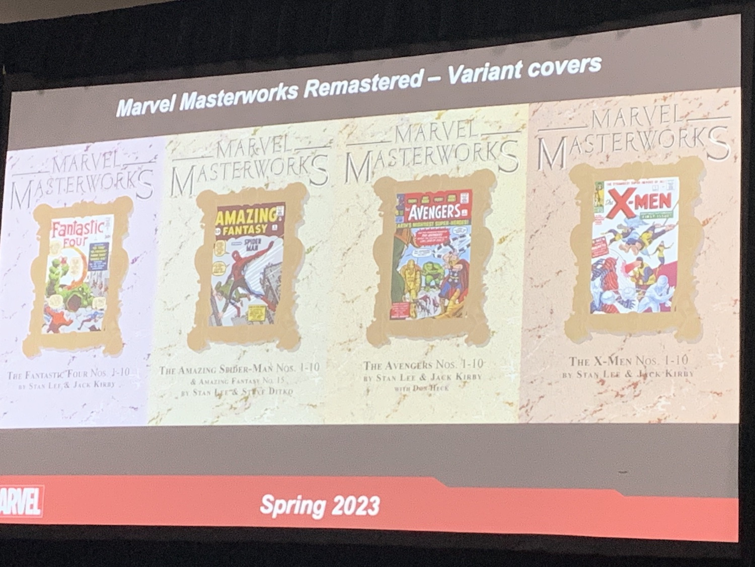 «Tenemos una buena base de aficionados que probablemente no estuvieran hace 30 años aquí para iniciar la colección de estos libros que ya van por el número 330», comentó Gabriel. Sin embargo, esta nueva edición de los Masterworks será ligeramente diferente a la original. «Las portadas se han actualizado, así que no será la portada original, sino la mejor impresión posible del dibujo original de la portada», dijo el directivo, añadiendo que los interiores también se actualizarán con más material extra. Como es habitual, se imprimirán con las dos versiones en las que aparecen actualmente, la del marco gris y la del marco coloreado.