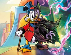It’s the story you never expected! One of the greatest characters in the history of comics leaps into his most epic adventure yet, in the manner only MARVEL can deliver! When UNCLE SCROOGE’S fabled money bin gets stolen by a shocking culprit, the world’s toughest duck must undertake a quest unlike any other, alongside a surprising array of allies: other versions of himself! An oversized special, from Marvel mainstay writer JASON AARON (THOR, AVENGERS) and a cadre of celebrated Scrooge artists!
