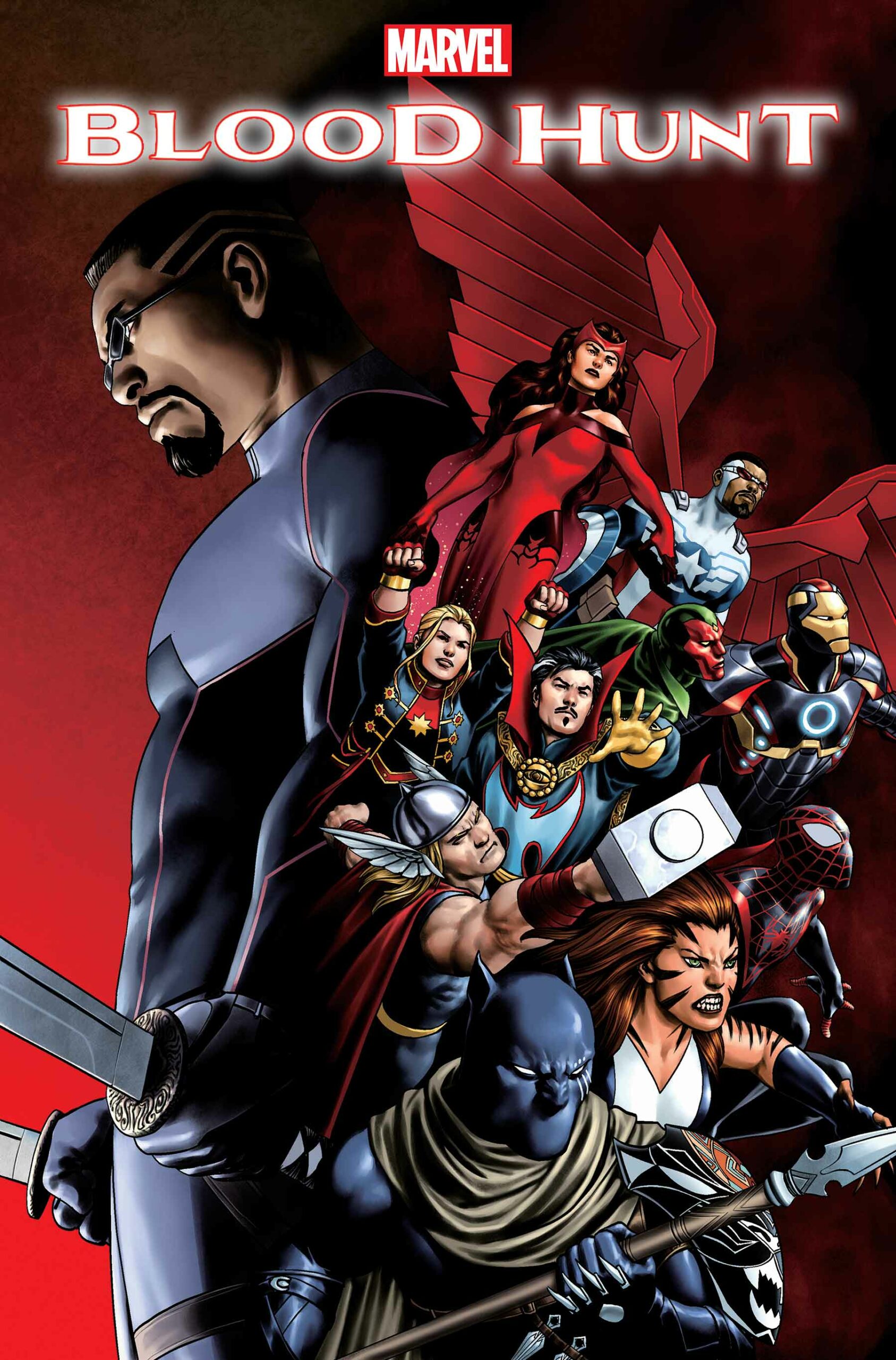 The bloody chaos continues as the events of BLOOD HUNT spill across the Marvel Universe! When the skies go dark, what will happen when a group of vampires gets a taste of the Hulk’s gamma-irradiated blood?! Kate Bishop takes aim against the creatures of the night with the help of a mysterious new vampire hunter. And Dagger and Elsa Bloodstone have teamed up to face down the vampiric hordes – but when a new combatant enters the field, will she prove friend or foe? Or both?! The formation of Marvel’s wildest new team yet, the BLOOD HUNTERS, continues!