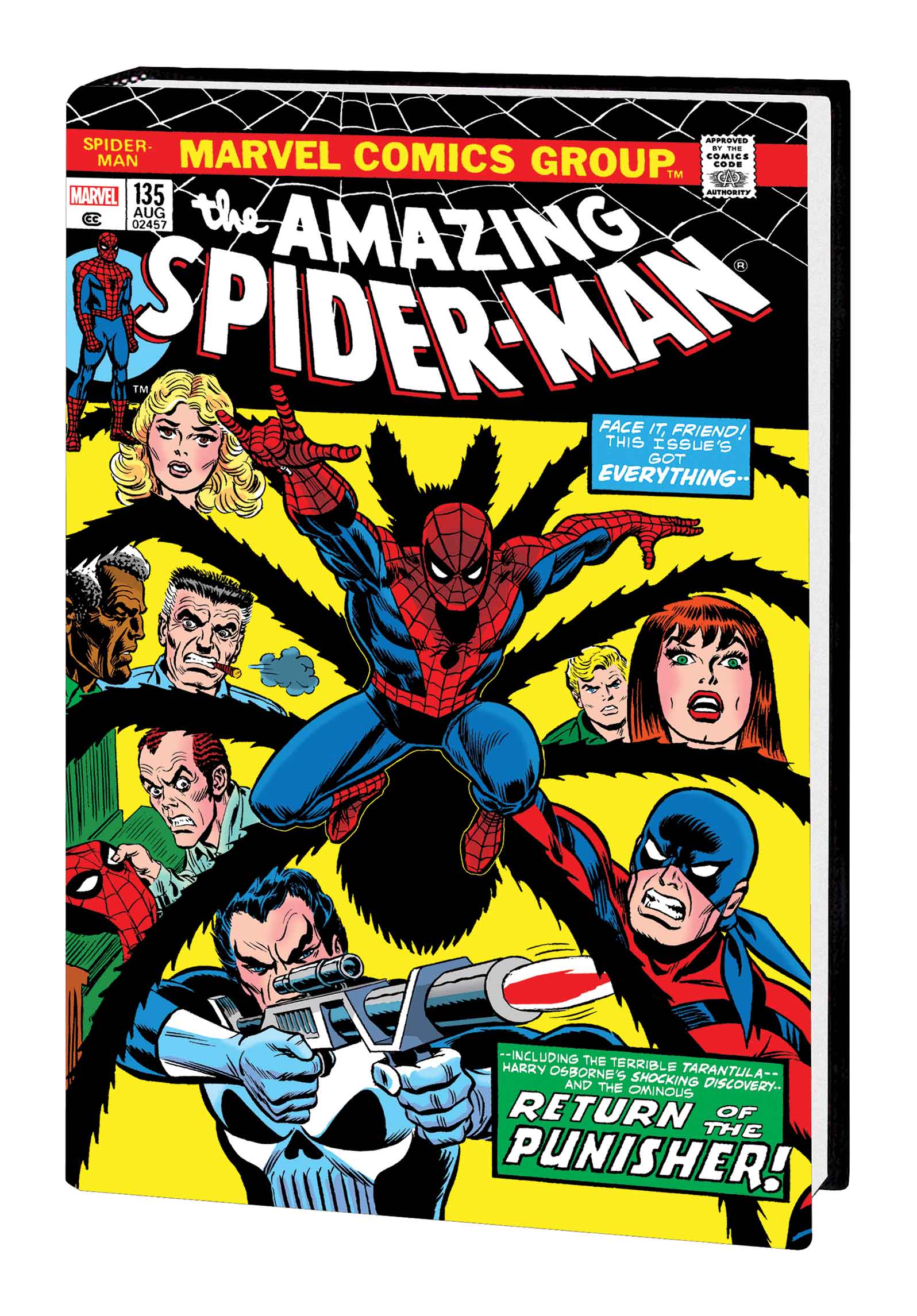 The adventures of comics’ most put-upon super hero, the Amazing Spider-Man, continue! Brought to you by Stan Lee, John Romita Sr., Gerry Conway, Gil Kane and Ross Andru, the saga ahead will captivate you unlike any Marvel comic has before. The Green Goblin is back! Gwen Stacy is missing! And it all leads to a confrontation atop the George Washington Bridge that will leave Peter Parker forever changed! It’s the story that cemented the Green Goblin as the definition of evil — and lest you think that’s the only milestone in these pages, this Omnibus also features the debut of the Punisher, the wedding of Aunt May and Doc Ock, Harry Osborn’s descent into madness, and a new role for Mary Jane Watson! Collecting AMAZING SPIDER-MAN (1963) #105-142, GIANT-SIZE SUPER-HEROES #1 and MARVEL SUPER-HEROES (1967) #14.