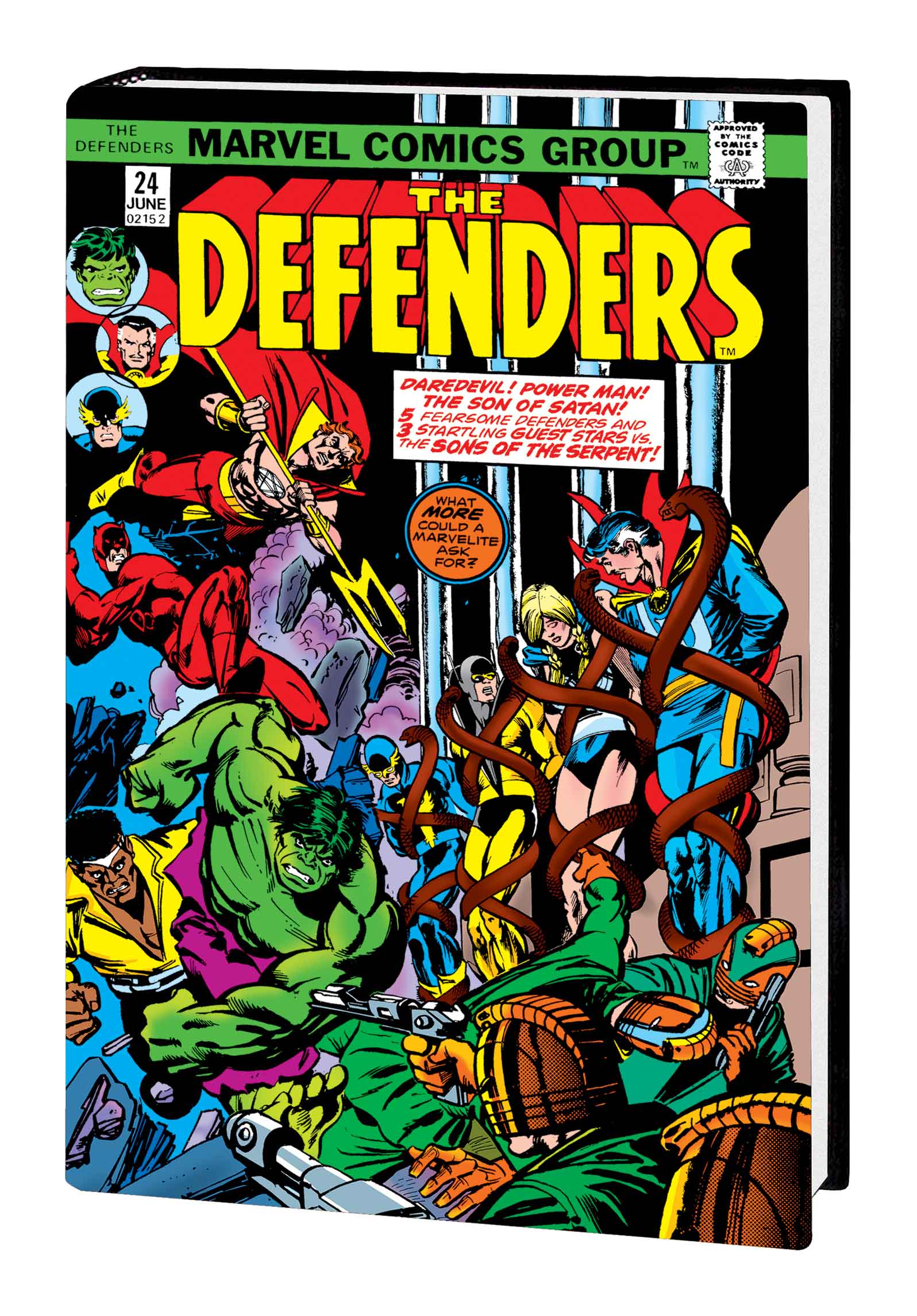 With super-sized conflict within the team and colossal menaces without, Stan Lee and Don Heck made AVENGERS a nail-biting, edge-of-your-seat extravaganza! The classic stories collected in this volume include battles against Kang the Conqueror, Doctor Doom, Power Man, the Enchantress and the Atlantean warlord Attuma! And while the action will keep your pulse up, twists like the departure of Captain America will deliver drama at its deepest level. Plus: Thrill to the return of Giant-Man and the Wasp — and Hank Pym’s transformation into Goliath! With first appearances of the Collector, the Swordsman and the Sons of the Serpent — not to mention the Black Widow’s entrance into the Avengers’ world — there’s no questioning that this volume is a Marvel Masterworks! Collecting AVENGERS (1963) #21-30.