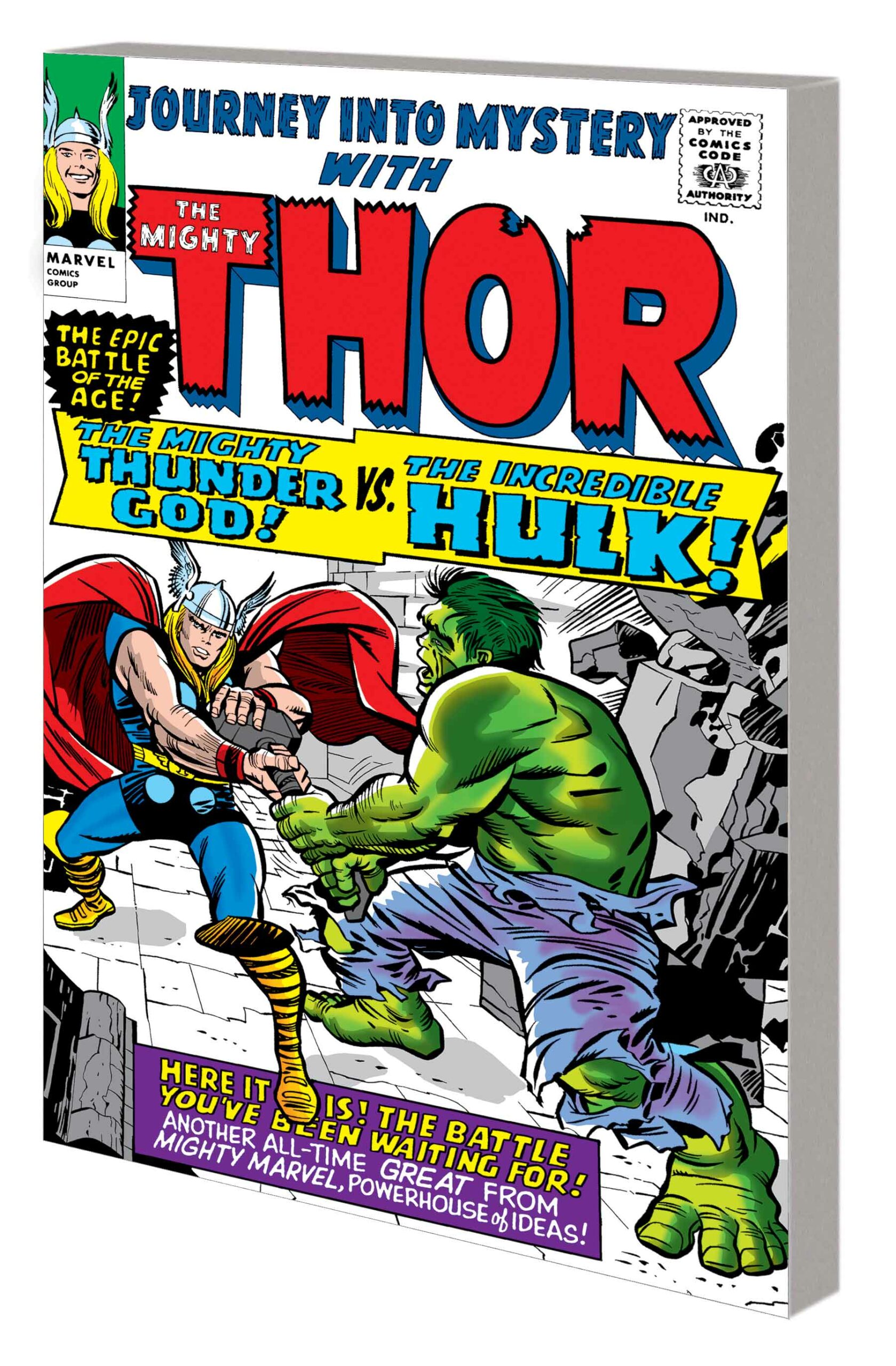 All hail Asgard! All hail Stan and Jack! That’s right, the creative team that sparked the Marvel revolution is back to show you just how it’s done with a collection of THOR classics! Experience a war against the Cobra and Mister Hyde for the life of Jane Foster, earthshaking fisticuffs between the Mighty Thor and the Incredible Hulk, the return of the Grey Gargoyle, the entrance of the Absorbing Man, Odin’s trial of Thor and Loki that exiles them to the dangerous and desolate Skornheim, and the first appearance of the unstoppable Destroyer! Also featuring the fan-favorite “Tales of Asgard” backup stories revealing the origins of Marvel’s Norse pantheon of heroes, villains, giants and mystic lands. Reserve your copy today – lightning doesn’t strike twice! Collecting JOURNEY INTO MYSTERY (1952) #110-119.