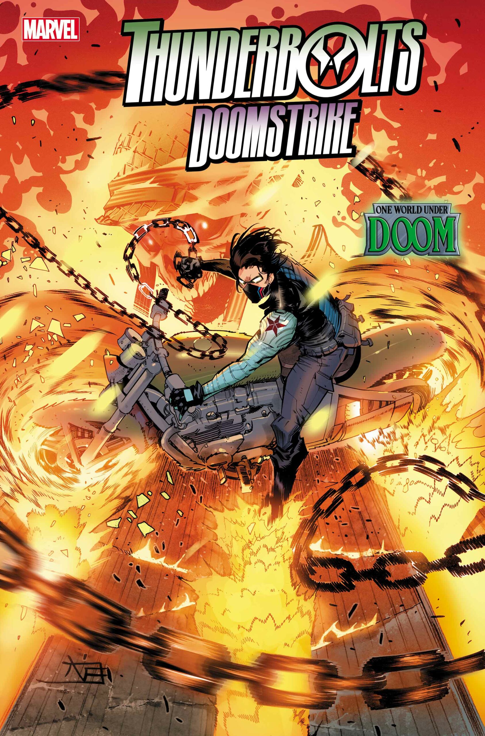 After a devastating defeat, Bucky decides to hit Doom where it hurts – and he’s bringing in some old friends to do it. It’s a modern-day HELLHUNTERS reunion as Bucky brings in Ghost Rider ’44 for a daring train robbery! With Sharon Carter and U.S.Agent backing them up, it seems like nothing can go wrong. But it’s not easy to get the jump on Doom…