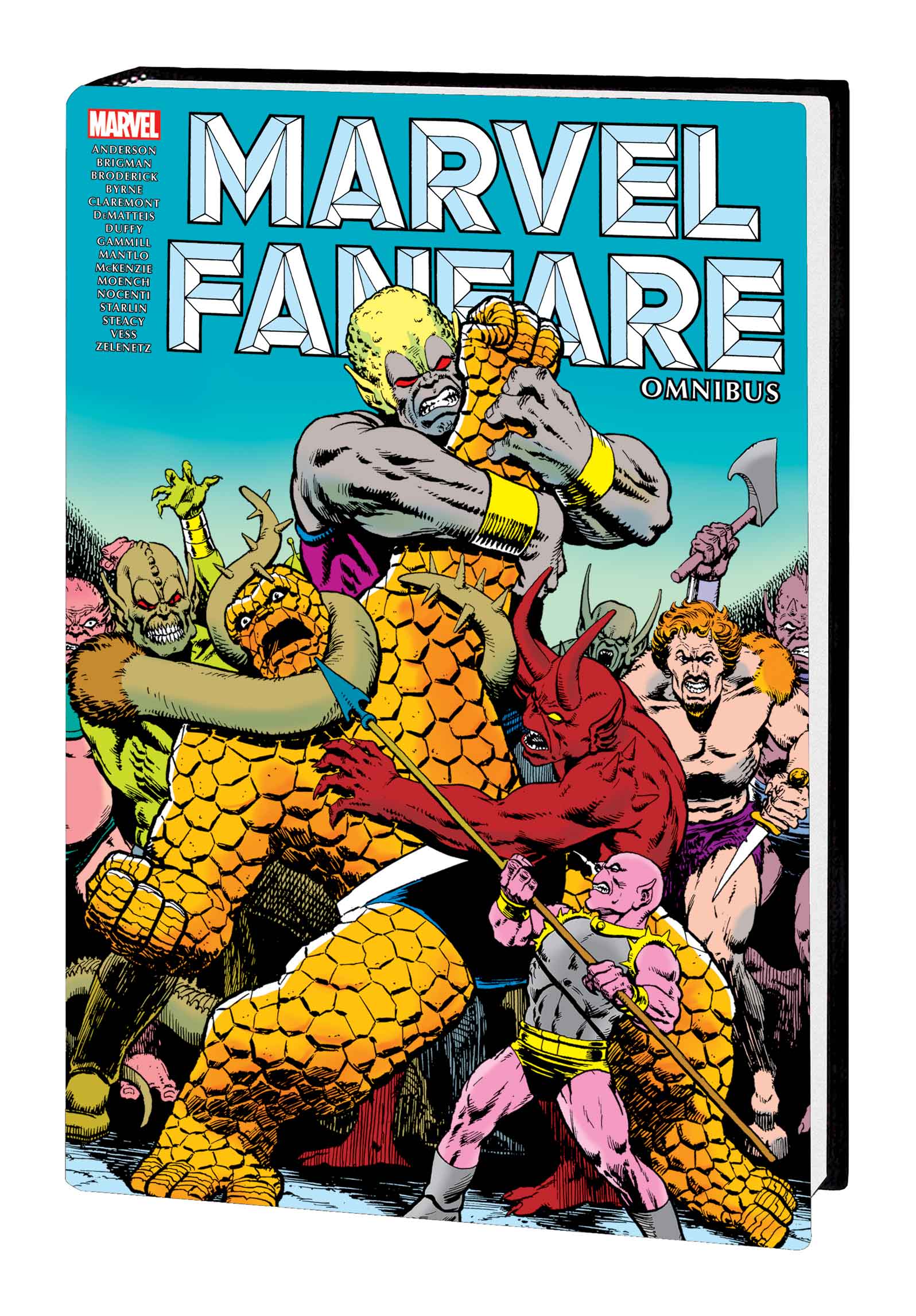 MARVEL FANFARE gave the leading writers and artists in the field the opportunity to make unique and defining statements on Marvel’s characters. And they didn’t hold back! This second Omnibus edition includes indelible adventures by writer/artist Jim Starlin that hearken back to the Marvel classics of Steve Ditko; Alan Zelenetz and Charles Vess’ stunning four-part masterpiece starring the Warriors Three; Doug Moench, Mike Ploog and Pat Broderick’s wonderful “Weirdworld;” John Byrne’s experimental all-splash page Hulk story; and fully painted Iron Man extravaganzas by Ken Steacy. And that’s just for starters. Up-and-comers like Mike Mignola and Craig Hamilton exhibit their inimitable styles with pinups that capture the core of characters in single images – and there’s so much more! Don’t miss this opportunity for the complete MARVEL FANFARE! Collecting MARVEL FANFARE (1982) #20-40.