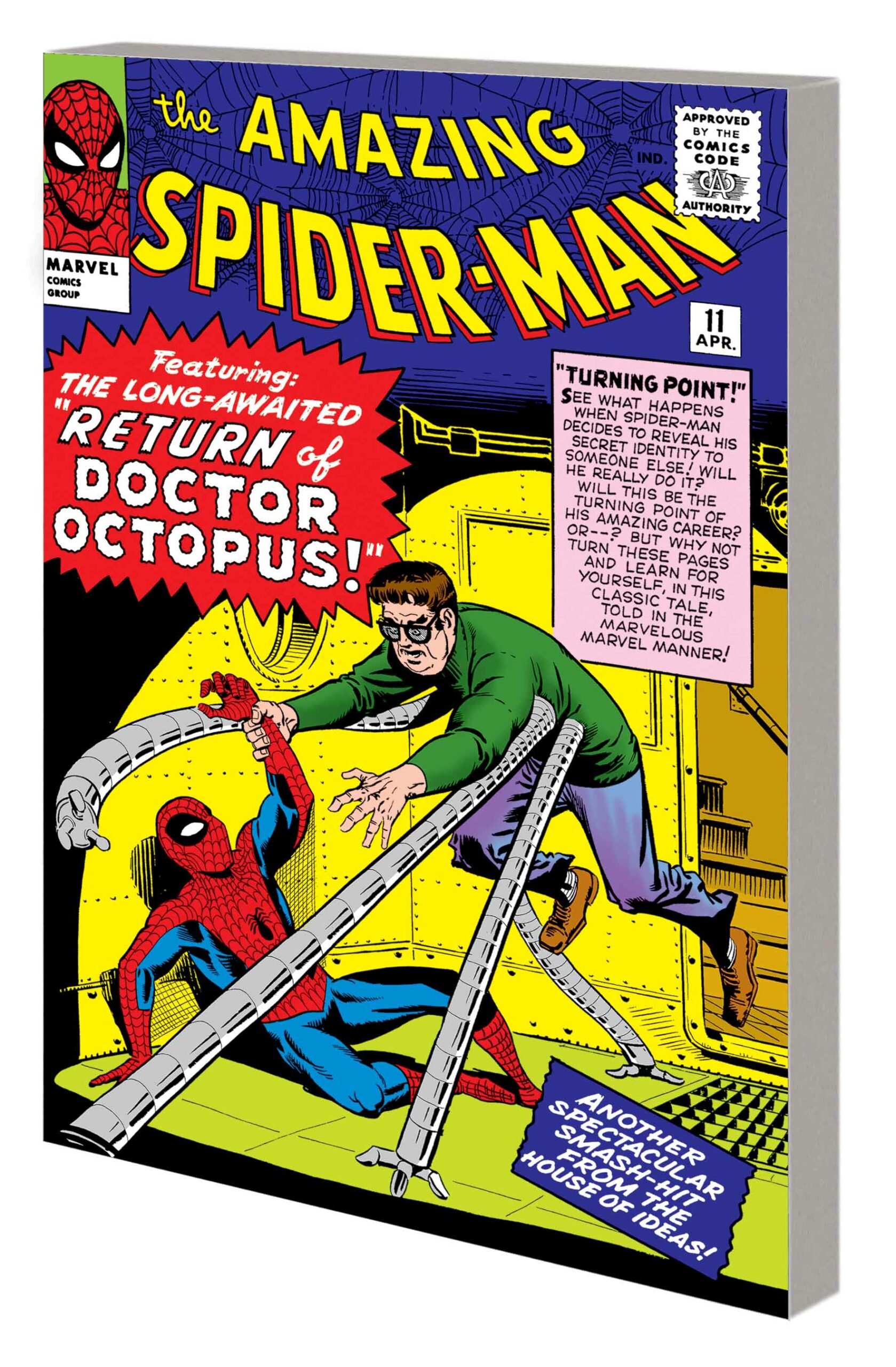 The stories that built the Marvel Universe, from the brilliant minds of legendary creators — now available in an accessible new format the whole family can enjoy! Peter Parker has not been Spider-Man for very long, but the threats this newly minted hero must face are mounting quickly! Experience the debuts of Mysterio, Kraven the Hunter, the Scorpion — and most dastardly of all, the Green Goblin! And as if that weren’t enough, the eight-armed Doctor Octopus has returned, determined to unmask Spidey! Plus: Witness the wall-crawler’s first meetings with Daredevil and the Hulk, and the continuing development of his love/hate friendship with the Human Torch! But when Doc Ock recruits five villainous allies to join him in the Sinister Six, Spider-Man will face the battle of his life! Collecting AMAZING SPIDER-MAN (1963) #11-19 and AMAZING SPIDER-MAN ANNUAL (1964) #1.
