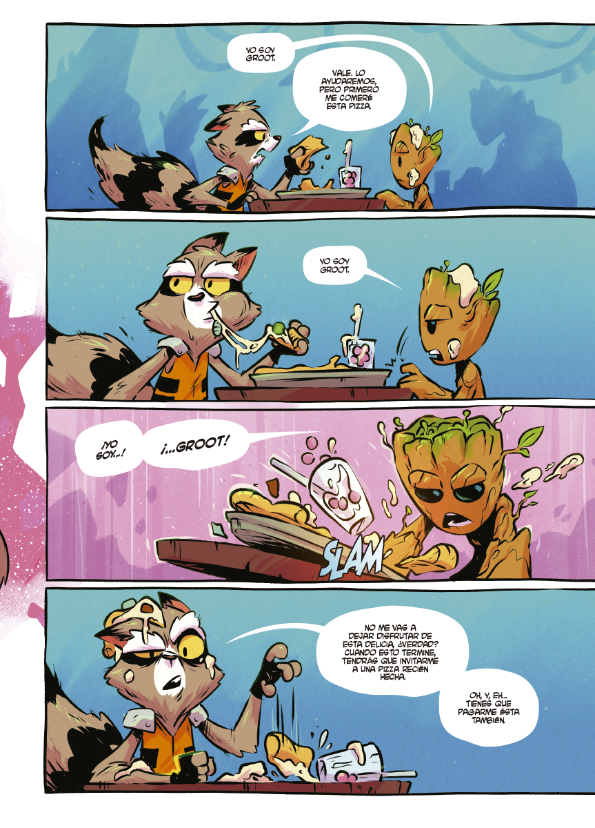 Son los dos miembros más carismáticos de Los Guardianes de la Galaxia, y ahora están vi-viendo el mejor momento de su vida, recorriendo el cosmos en busca de la mejor pizza del Universo. Justo cuando Mapache Cohete está a punto de morder una pegajosa porción de pizza con basura extra, aparece una alerta en su rastreador de recompensas: ¡Starlord ha sido secuestrado! ¡Únete a la pareja galáctica más descacharrante en esta imprescindible aventura!