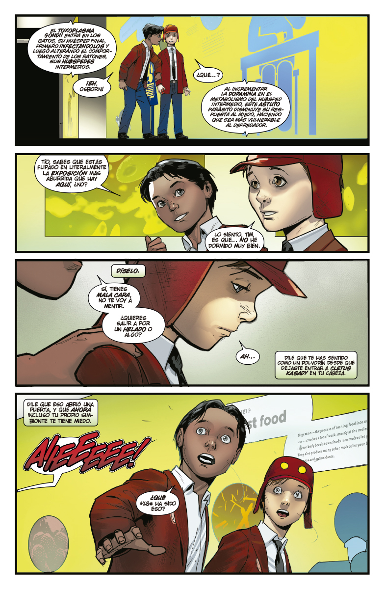 ¿Naturaleza contra crianza? Puede que «El Reinado de Matanza» haya llegado a su fin, pero los problemas de Normie Osborn y su simbionte no han hecho más que comenzar. Durante semanas, Normie ha pacificado al simbionte y ha logrado mantener bajo control la rabiosa máquina de matar que hay en su interior. Pero eso lo ha dejado vulnerable a la llegada de Calavera…