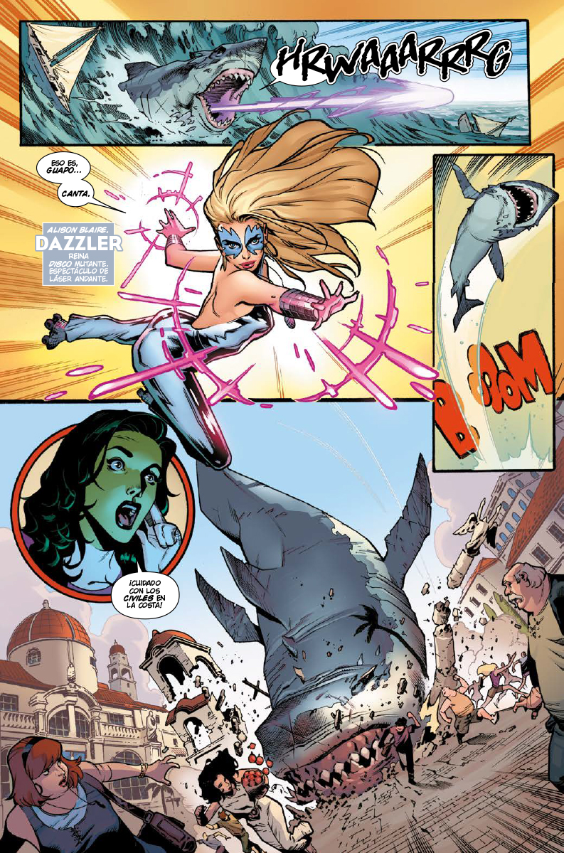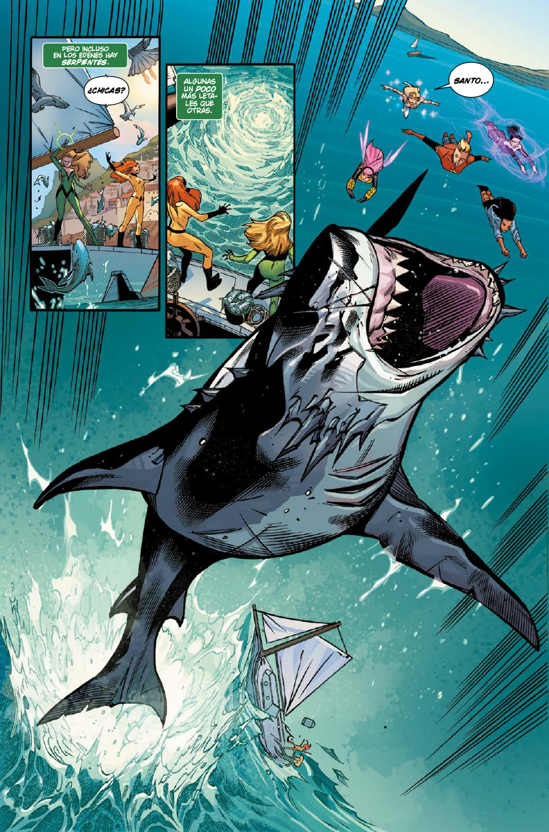 Aunque sea material modernete me gusta este grupo formado únicamente por superheroínas y esa especie de megalodón!