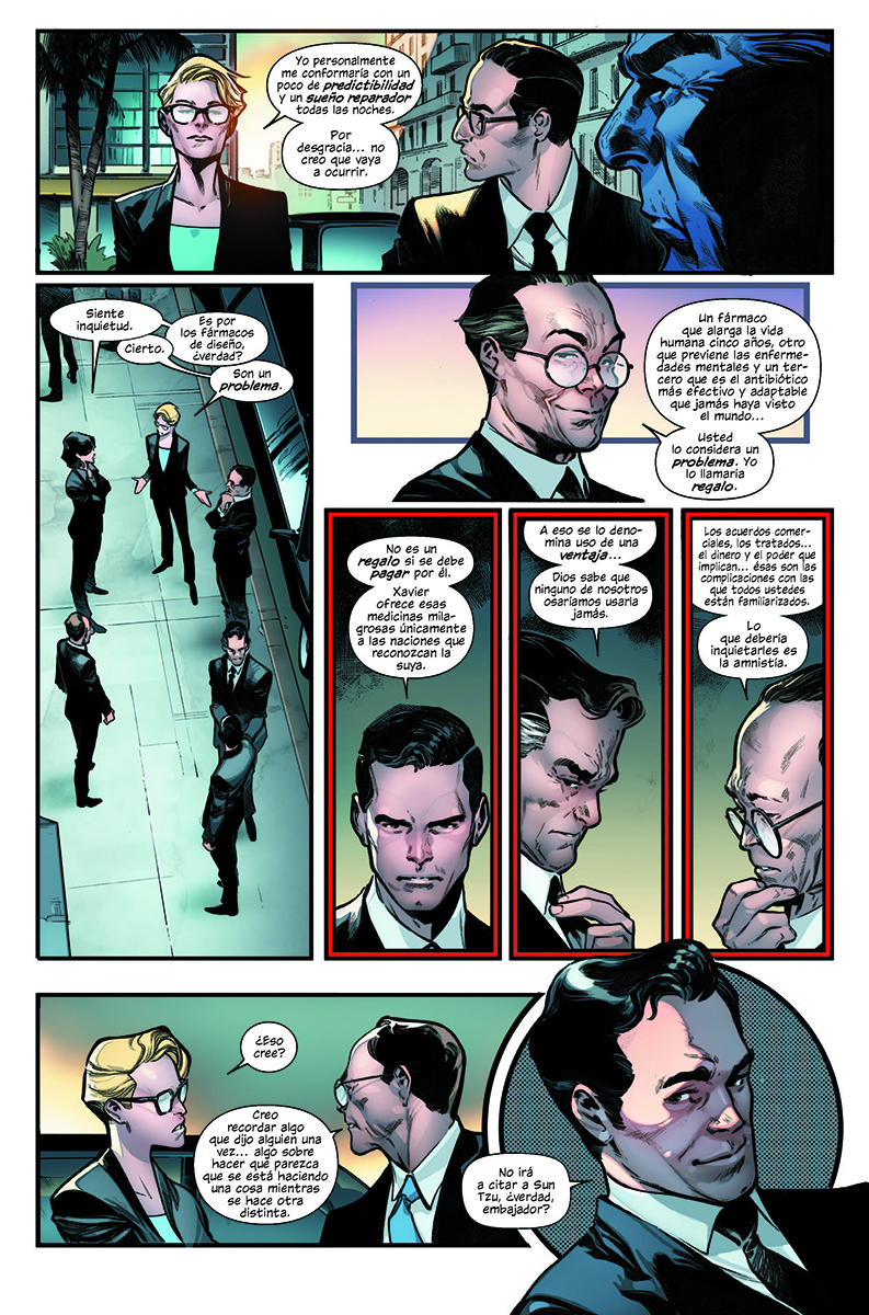 Cabe decir que uno de los últimos números publicados en inglés (creo que en «Rise of the Powers of X»), el propio Charles Xavier criticaba la idea de Krakoa, que veía como un «mal menor» que se había visto obligado a aceptar pero que suponía abandonar definitivamente su sueño de coexistencia; no sé qué tal le sentarían esas viñetas a quienes aceptaron acríticamente el «sueño krakoano» (para mí que muchos no las entendieron o prefirieron ignorarlas).