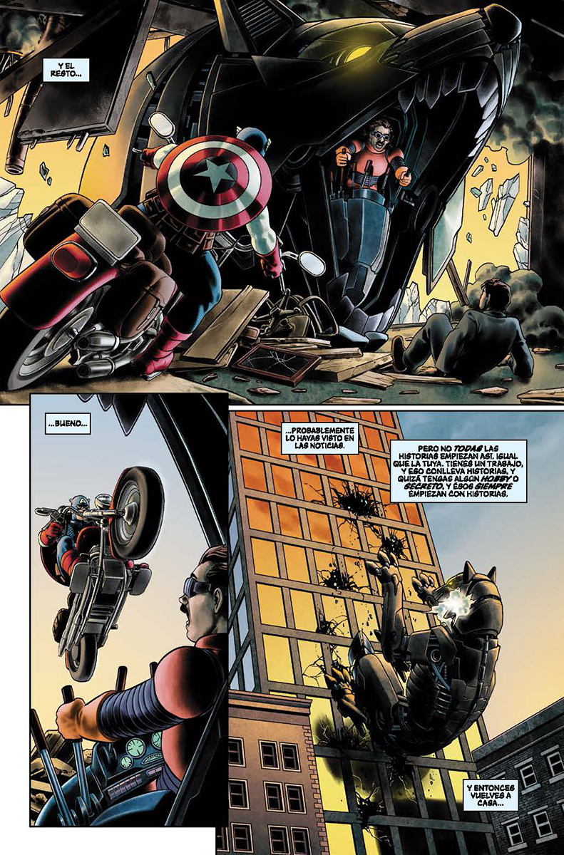 Hace décadas, Steve Rogers cambió el mundo para siempre. Ahora, fuerzas poderosas tratan de garantizar que no vuelva a hacerlo nunca más. Pasado, presente y futuro chocan cuando el hombre fuera del tiempo se enfrenta a una amenaza decidida a llevar al mundo por un camino más oscuro. J. Michael Straczynski y Jesús Saiz se embarcan en un nuevo y emocionante viaje para el Capitán América.