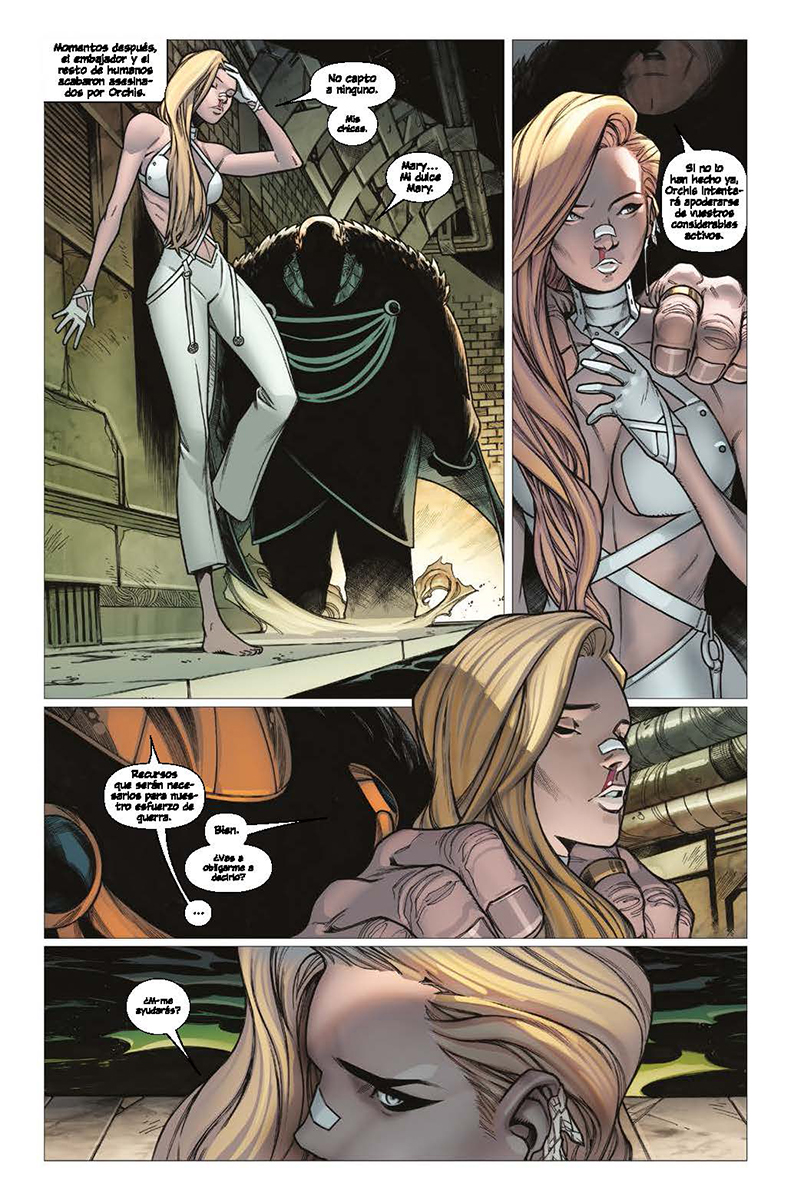 ¡No estamos perdiendo a una mujer-X! ¡Estamos ganando un vengador! El momento que nunca debería haber ocurrido está aquí. La caída de X ha conducido al más inesperado matrimonio superheroico: ¡Emma Frost y Tony Stark! Mientras, la primera misión de La Patrulla-X de Madelyne Pryor termina en sangre y llamas.