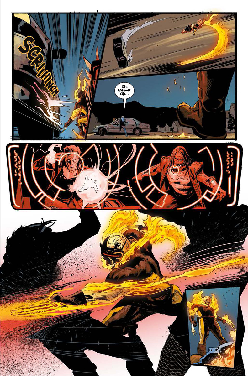 Con la conclusión de «Armas de Venganza», el crossover de Lobezno y Motorista Fantasma en que se enfrentan a una fuerza demoniaca capaz de ponerlos en jaque. Benjamin Percy y Geoff Shaw te traen el fuego del Infierno.
