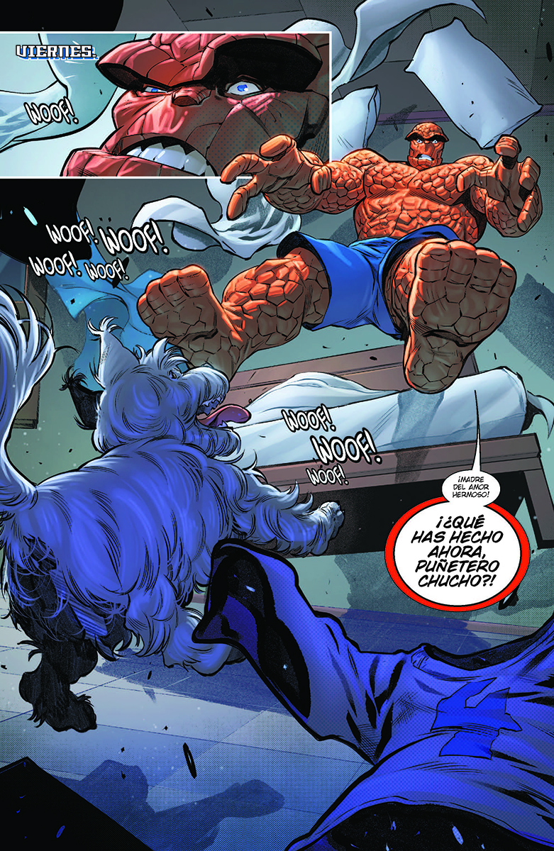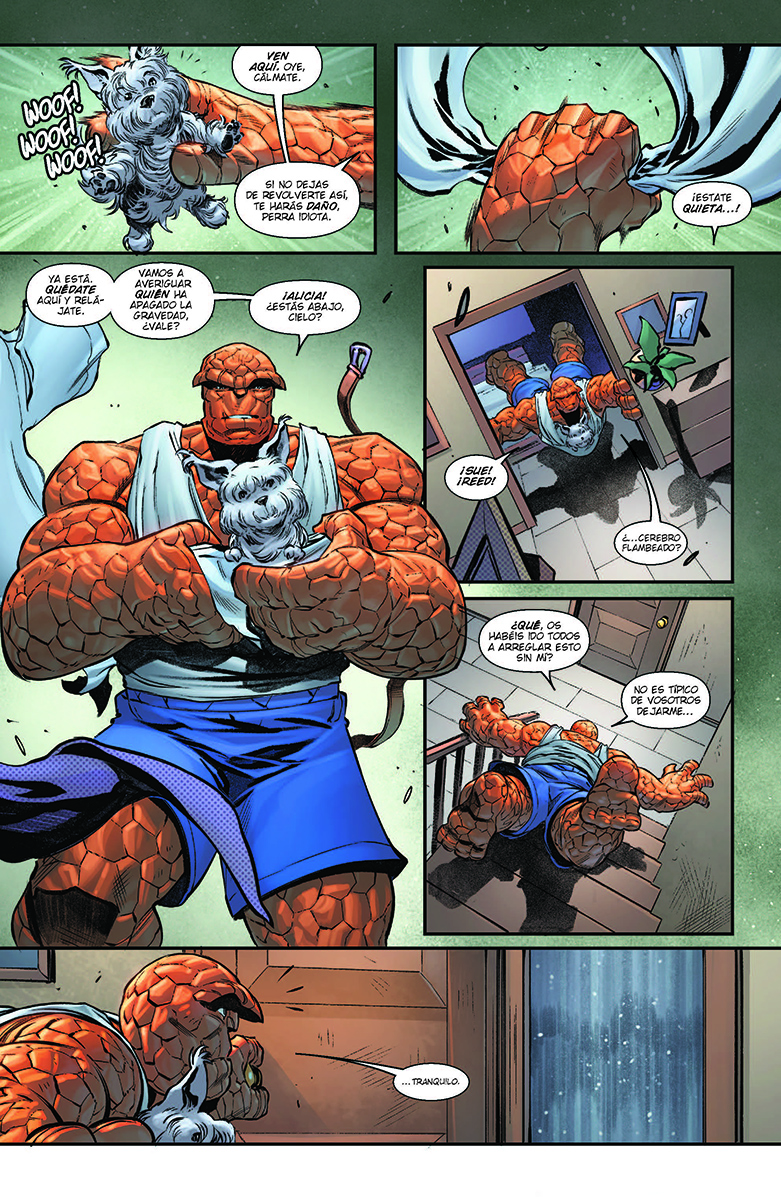 Ben Grimm despierta en una situación imposible… junto con la casa en la que dormía y todo lo que hay en ella, está en caída libre hasta el núcleo de la Tierra. Deberá salvar en solitario a Los Cuatro Fantásticos, a la ciudad y también a un perrito.