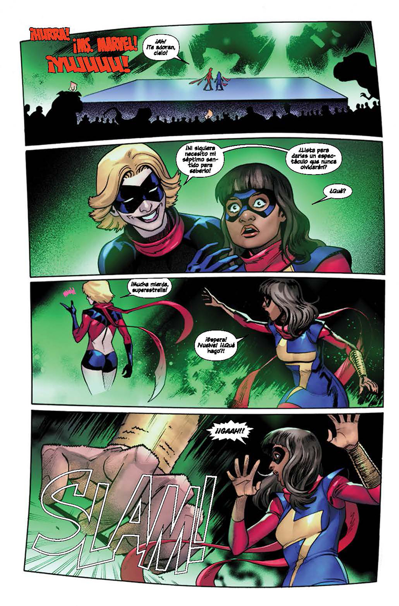 ¡Kamala Khan ha vuelto, y ahora es una mujer-X! Ms. Marvel murió, para resucitar a través de la tecnología de Krakoa. ¡Menuda manera de descubrir que también es mutante! Las malas noticias son que su regreso, durante la Gala Fuego Infernal, no fue como estaba planeado, y ahora el Homo superior está siendo perseguido por todo un mundo de temor y odio. Kamala tiene una misión secreta encomendada por La Patrulla-X, mientras lucha por aclimatarse a su nueva identidad. Además, este nuevo capítulo en la historia de Ms. Marvel está narrado por Iman Vellani, su intérprete en el Universo Audiovisual Marvel, Sabir Pirzada y Carlos Gómez.