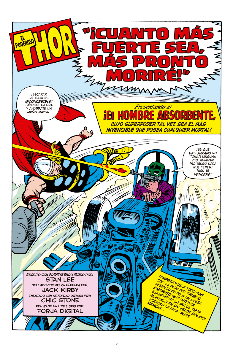 Es más que un cómic: es una máquina del tiempo. Descubre la potencia arrolladora de la primera aparición del Hombre Absorbente, como sólo Jack podría haberla imaginado. Asiste en primera línea al vibrante juicio de los dioses. Y asiste al día de El Destructor, la amenaza creada por el propio Odín. Contiene los correos de lectores de la edición original y la cronología que lo sitúa todo en contexto. ¡Biblioteca Marvel, como siempre y mejor que nunca! ¡No puedes perderte esta edición histórica!