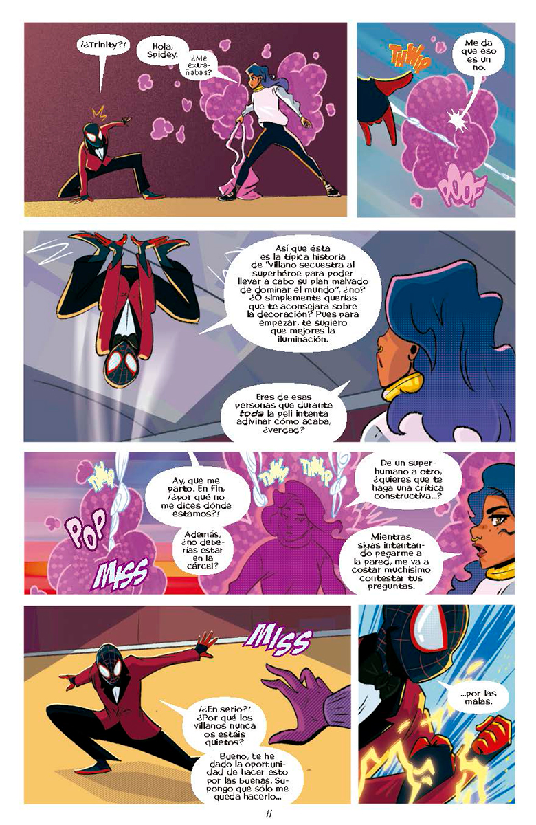 ¡Únete a Miles Morales en su aventura más épica hasta el momento! Mantener Brooklyn a salvo, derrotar a los malos y hacer los deberes… ¡nada se resiste al joven trepamuros! Pero cuando le invitan al lanzamiento de un nuevo videojuego, las cosas se tuercen rápidamente. Cualquiera que juegue se queda congelado, y todo se debe a un nuevo villano. Con el destino del mundo en sus manos, ¿podrá Miles convertir a viejos enemigos en amigos y encontrar las respuestas que necesita?