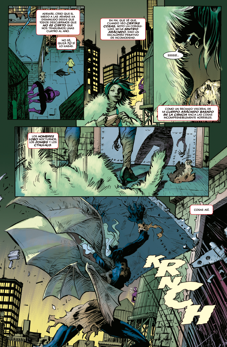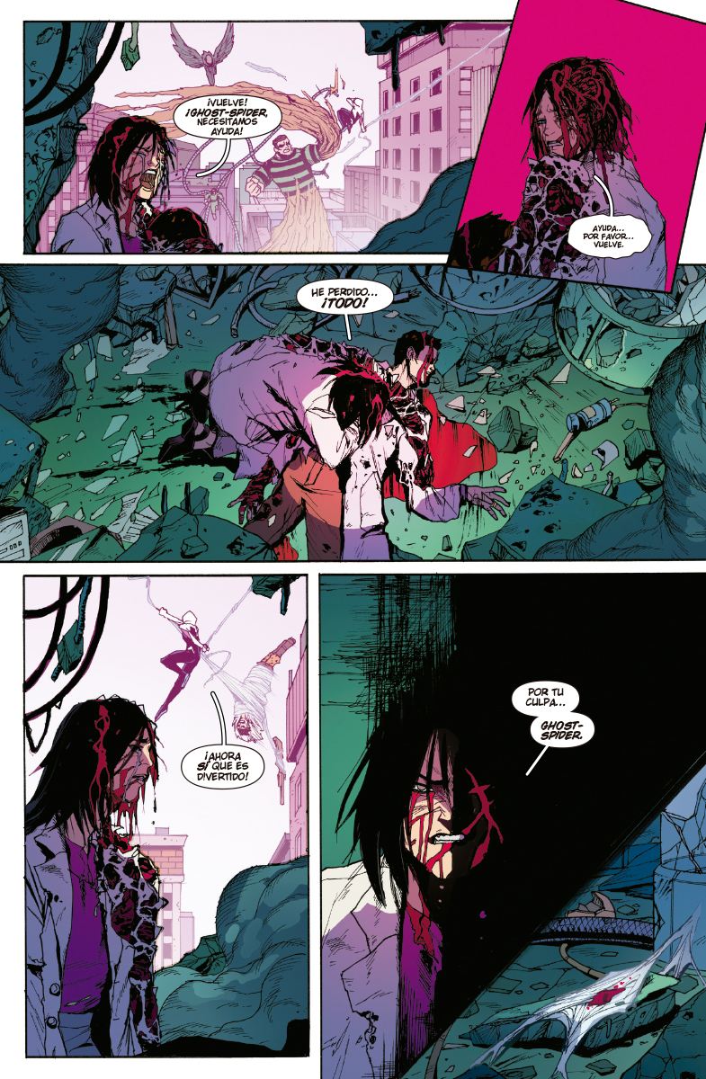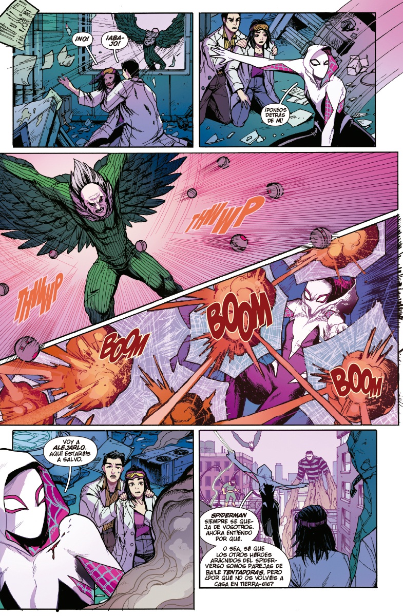 ¡La vida de Ghost-Spider está patas arriba! Gwen se enfrenta a algunos de los peores enemigos arácnidos, como Doctor Octopus, El Hombre de Arena, El Buitre y otros. Pero… ¿por qué todos se parecen a ella? Descubre el más sorprendente giro en la saga de Gwen.