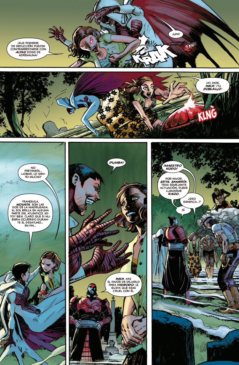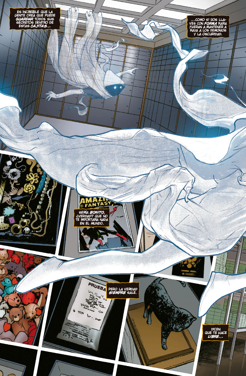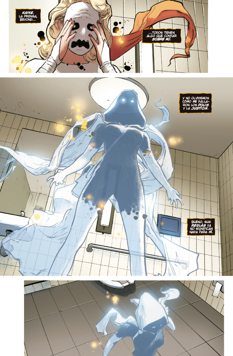 De las páginas de «Red oscura», llega la aventura en solitario de Hallow’s Eve. El mundo de Janine Godbe ha saltado por los aires demasiadas veces. Pero esta vez cuenta con superpoderes para enfrentarse a ello. Sus máscaras místicas le confieren habilidades como nunca has visto, pero también atraen todo tipo de personas dispuestas a darle caza.