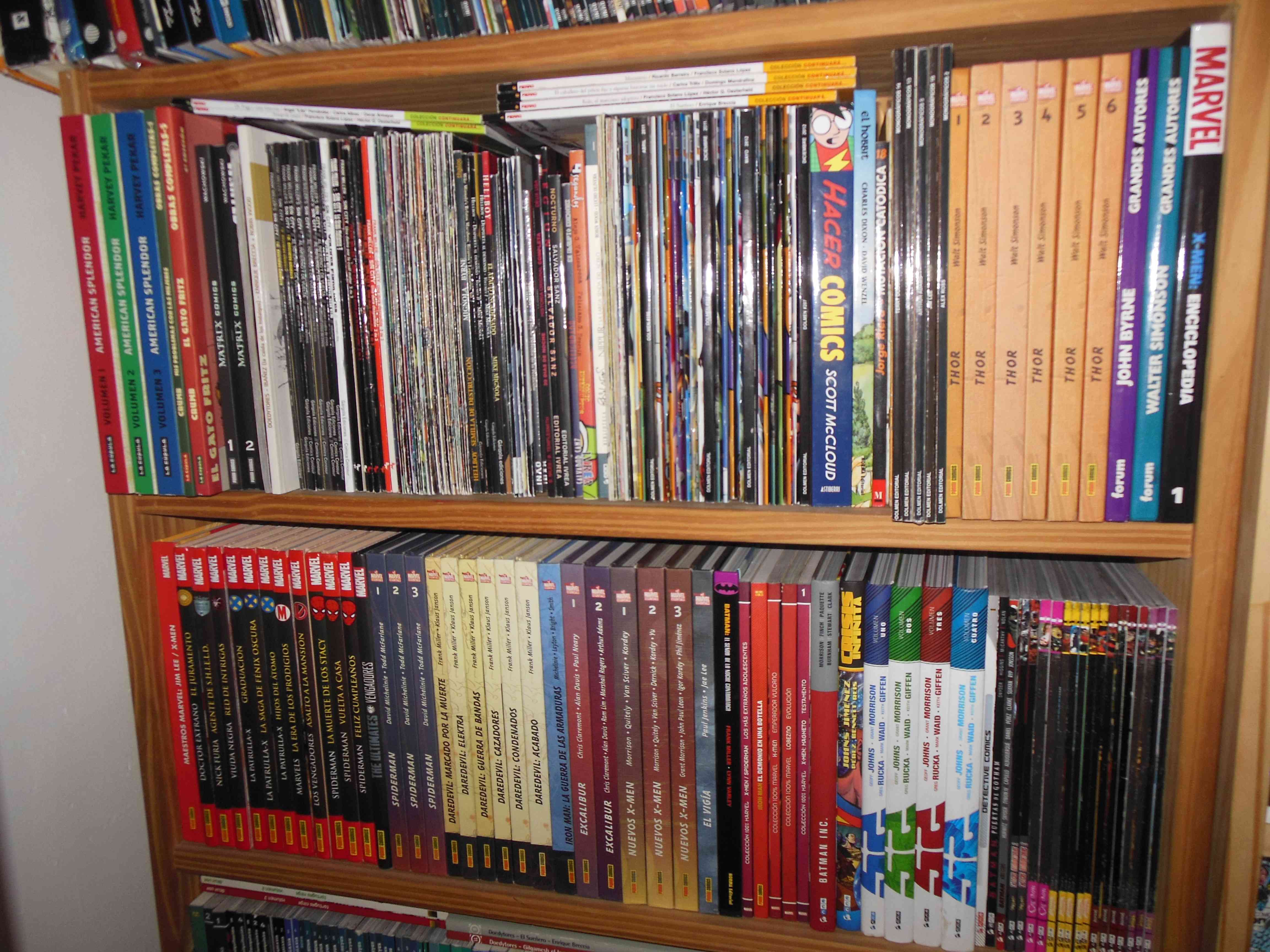 Mis colecciones favoritas son X-Men y Batman; de los mutantes compro incondicionalmente todo sin importar guionistas ni dibujantes. Y luego sigo autores como Gaiman, Moore, Morrison, Miller, y sagas clásicas.