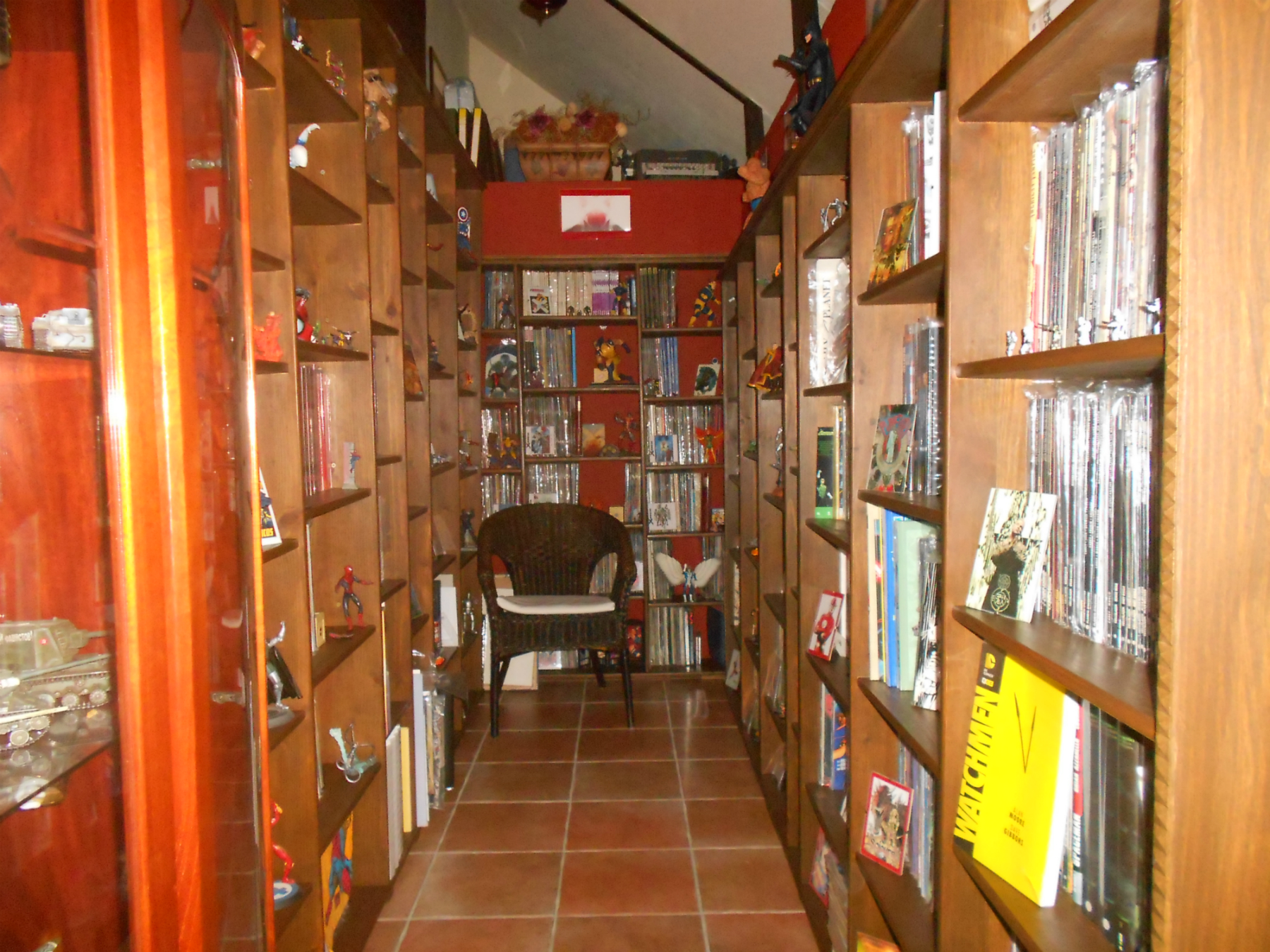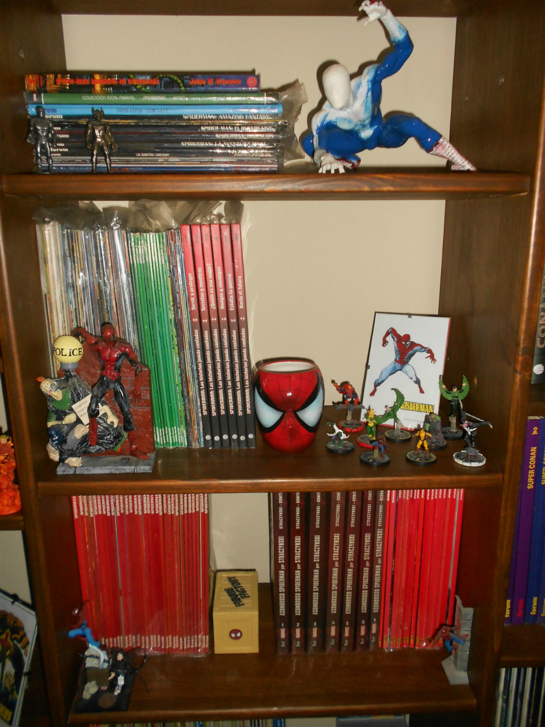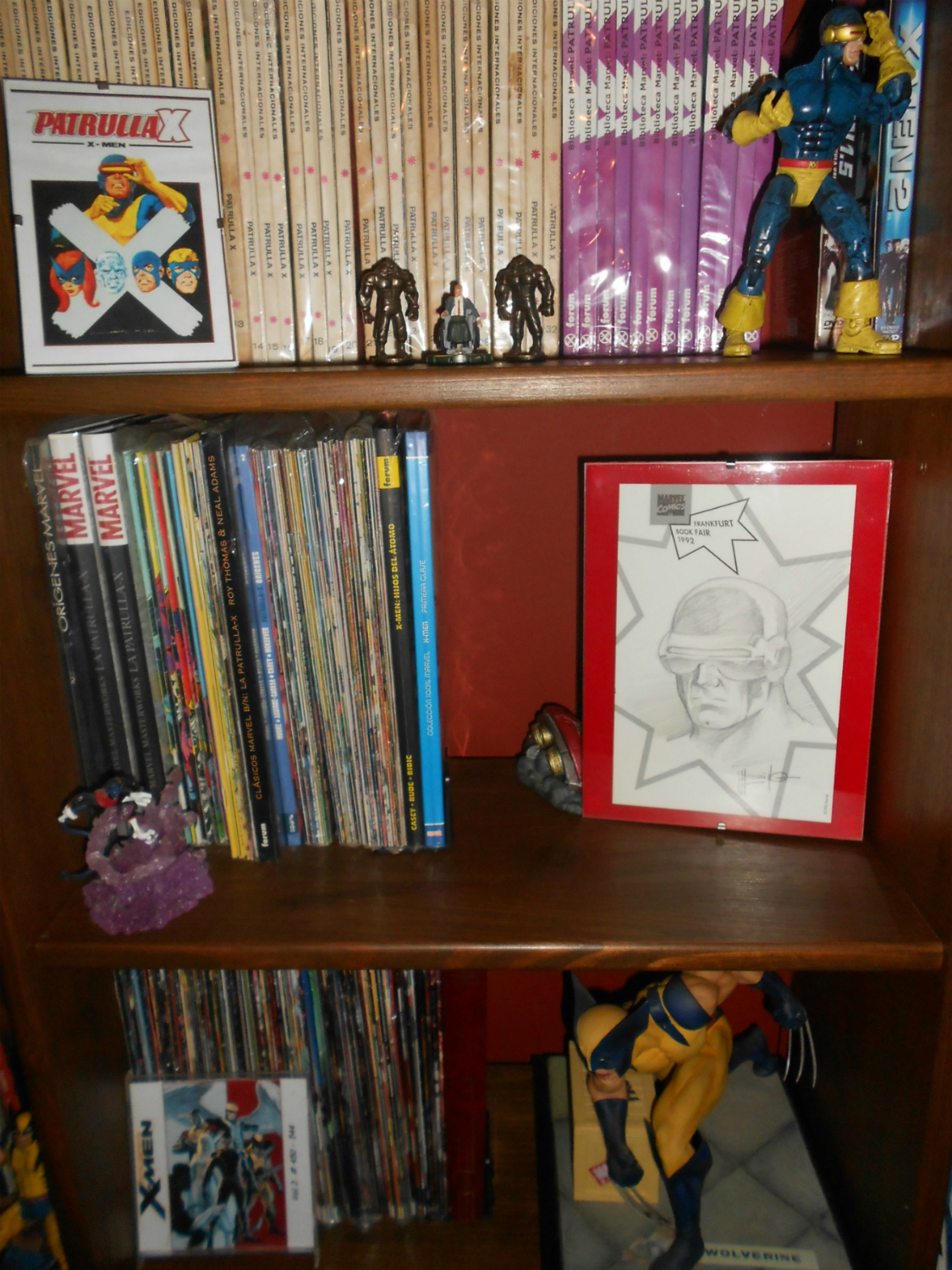 La colección la saboreo temáticamente catalogada….en cada estantería, un personaje o tema. A saber: 4F, Spidey, Avengers, Mutantes, LawMen, Antiheroes, Strange Tales, Cosmic Powers, DC, Independiente y Línea Vértigo (este último cada vez necesita más espacio).