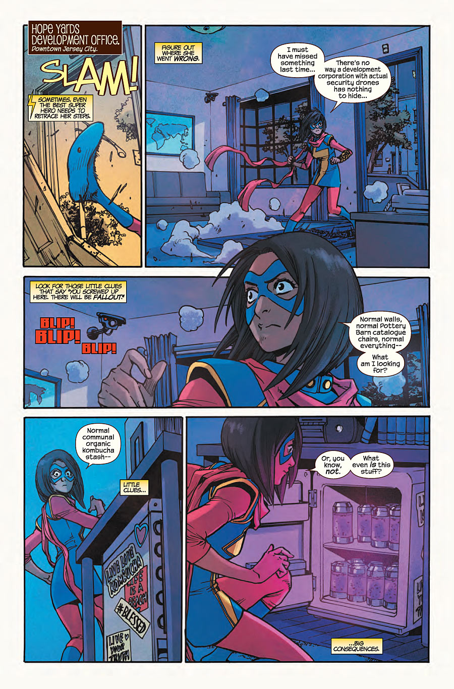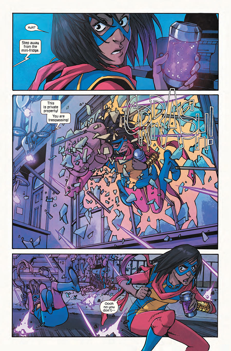 Y lo peor es que toda Jersy City piensa que Ms. Marvel es la enemiga real.