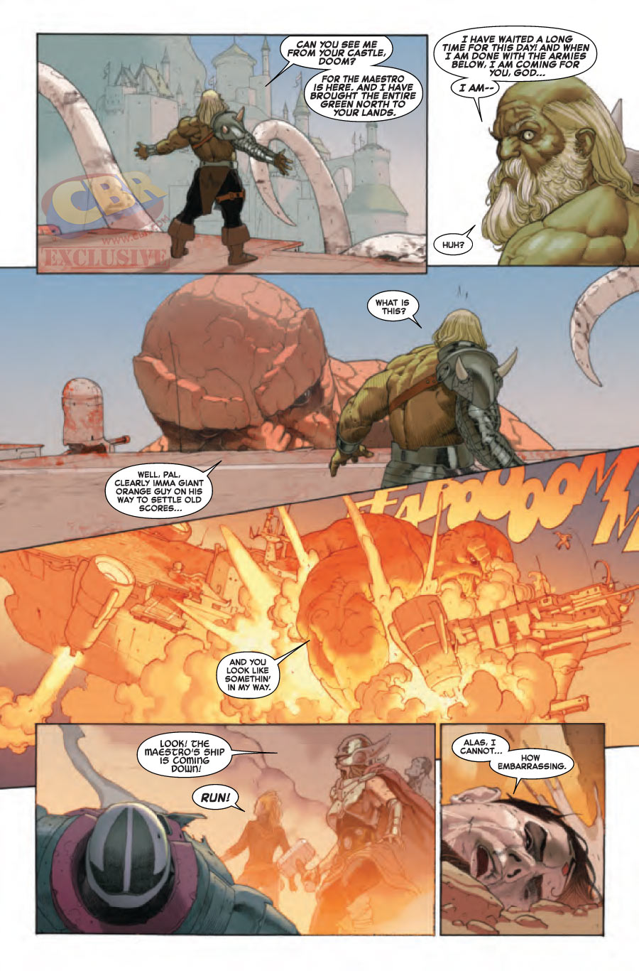 Los creadores Jonathan Hickman y Esad Ribic marchan hacia el final de su gran saga mientras la batalla final entre Dios Muerte se recrudece. El Mundo de Batalla está pendiente de un hilo. El Escudo ha caído. Los ejércitos marchan haciad Doomstadt. Cuando el Mundo de Batalla comienza a dar paso a un nuevo Universo Marvel, nadie llegará al otro lado sin heridas, si acaso consiguen salir. ¿Quién vive? ¿Quién muere? Averigualo en el penúltimo capítulo.